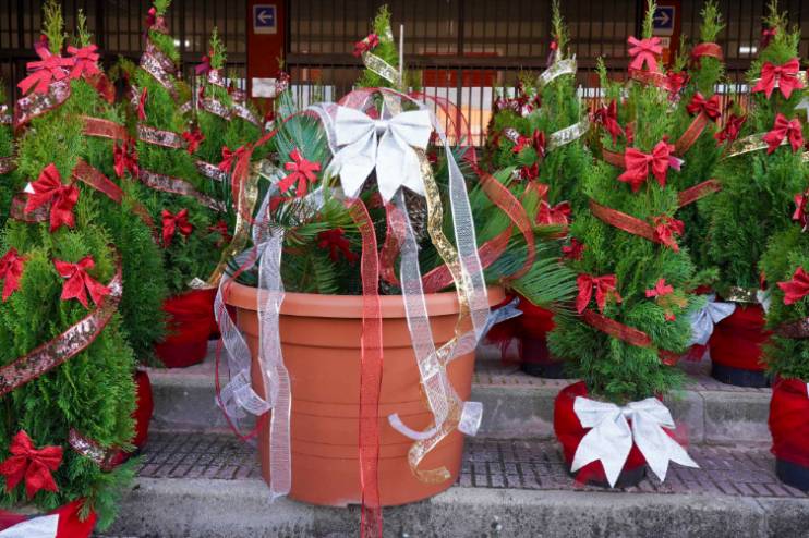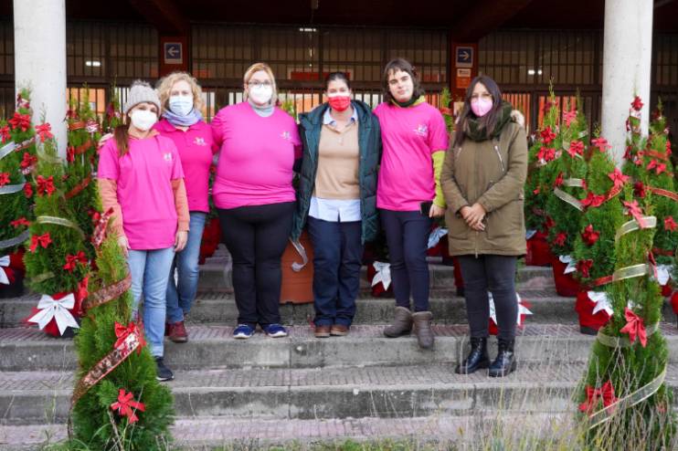 Árboles decorados por personas con diversidad funcional para los comercios locales adheridos a la campaña navideña