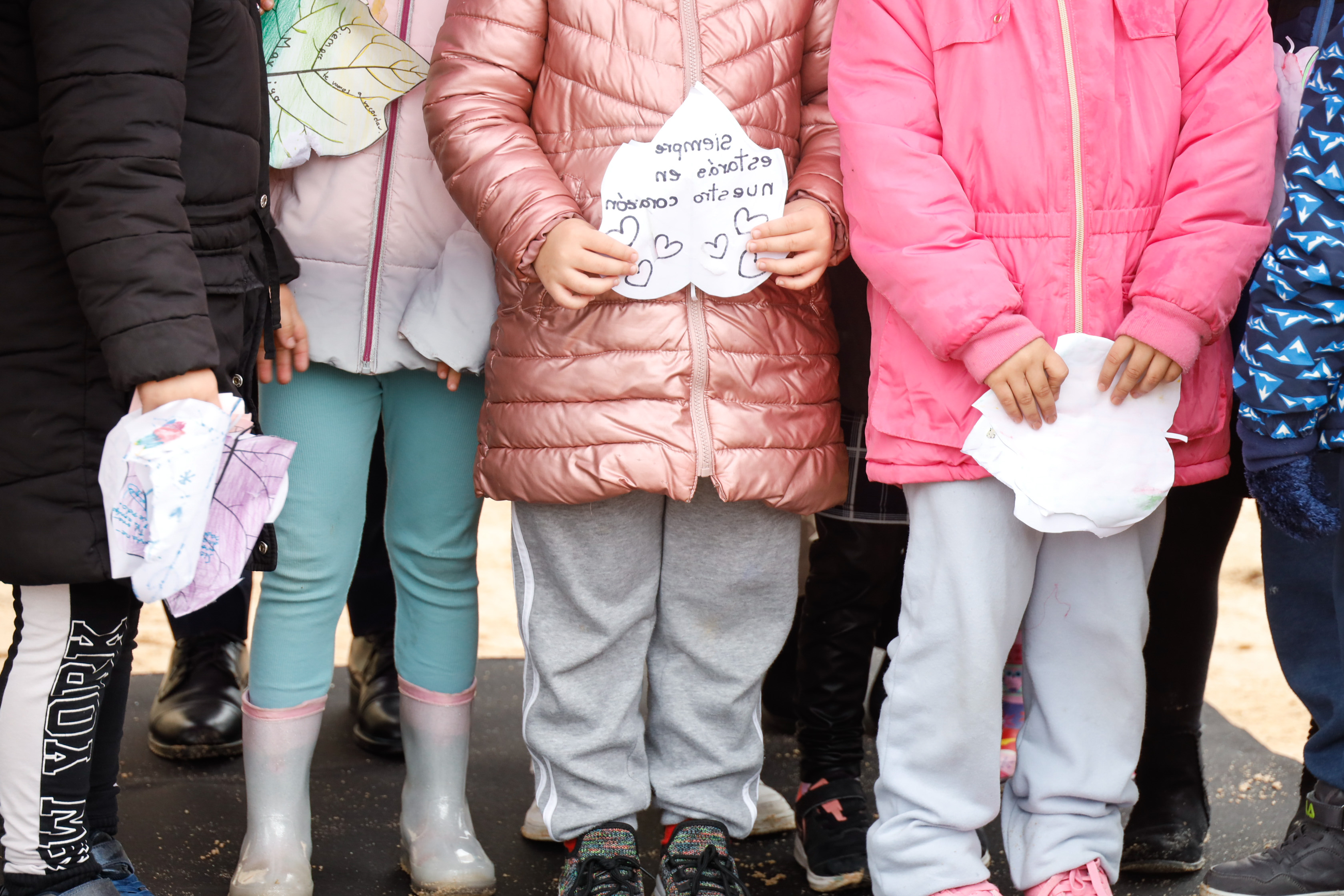 A petición de los compañeros de crossfit de Irina, se ha procedido a la plantación de dos árboles que quedarán para siempre en su recuerdo. El momento más emotivo ha sido cuando los compañeros de la pequeña Mariya han depositado dibujos de hojas de árboles en el lugar en el que han sido colocadas sus raíces.