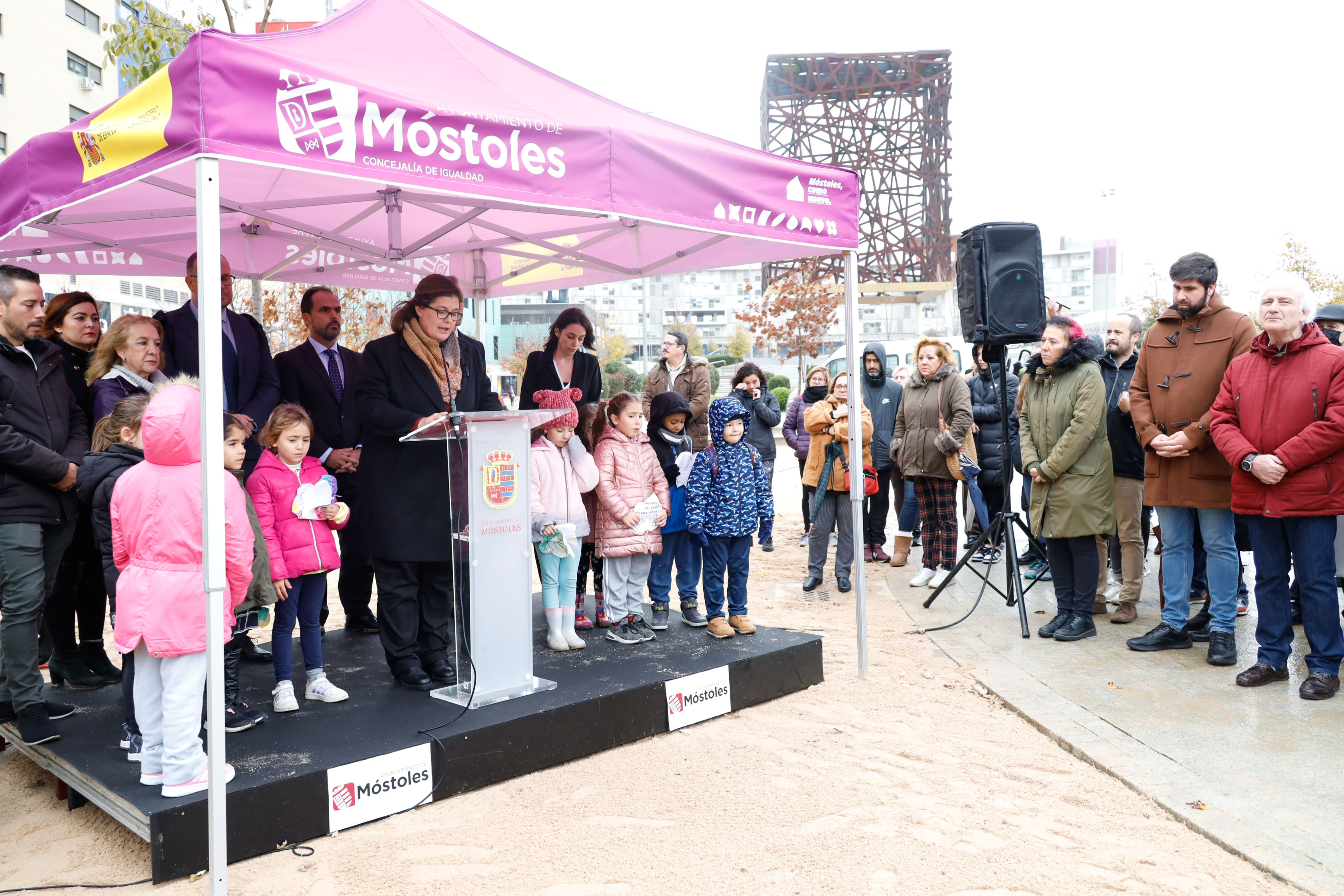 "Hoy sigue siendo un día triste para Móstoles- ha destacado la Alcaldesa- pero estén donde estén Irina y Mariya, estarán orgullosas, porque en este lugar, frente al sitio donde Irina conoció a tanta gente que la quiere y donde fue feliz y se llenaba de energía practicando el deporte que tanto le gustaba, quedará grabado su nombre y el de su pequeña, junto a dos árboles, que representan la vida y la luz que se apagó el pasado 6 de noviembre".
