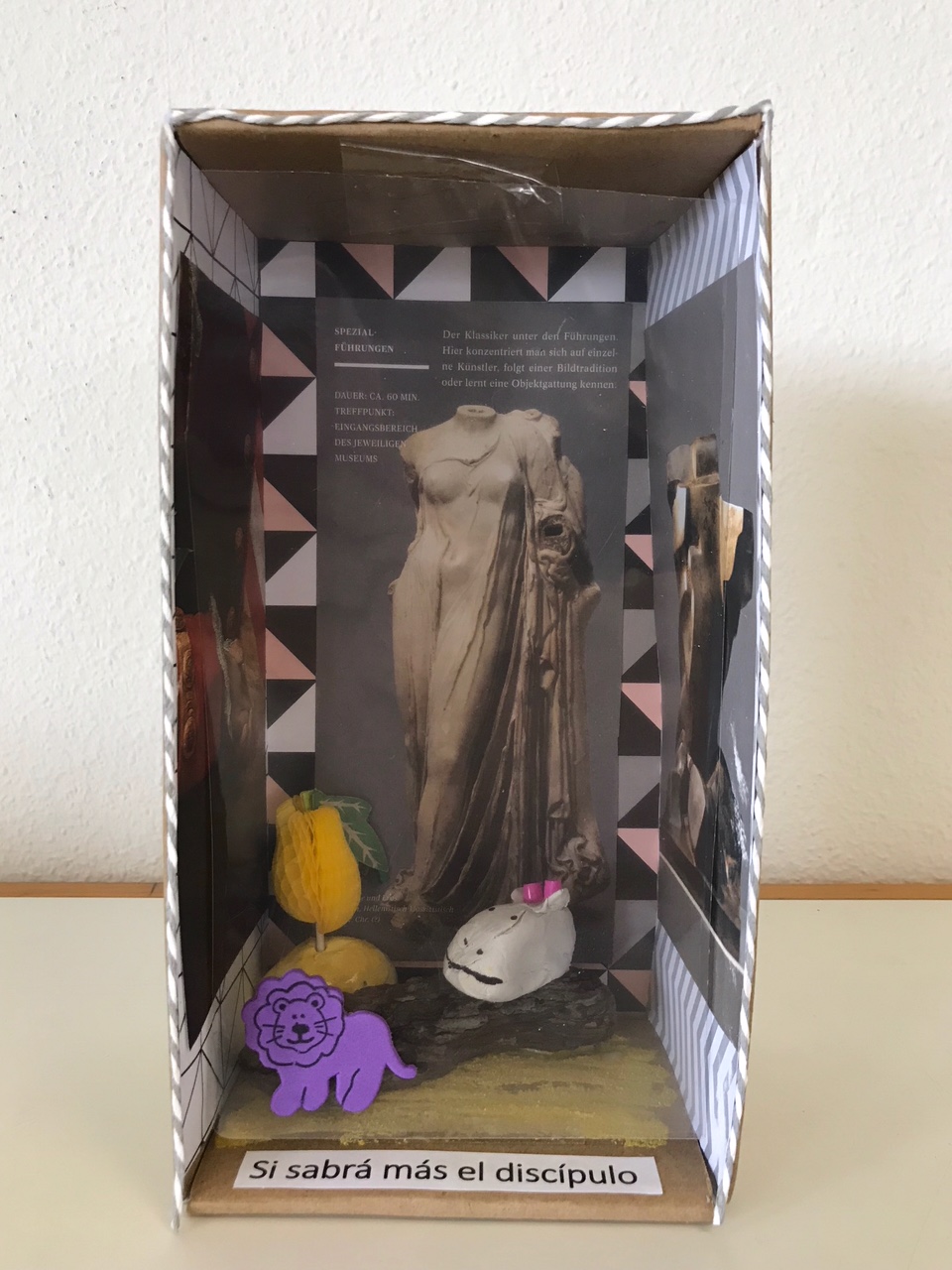 Este es el punto de partida del taller posterior, en el que las familias tienen que trasladar las denuncias de Goya a nuestro contexto actual y elaborar su propia caja-escaparate.