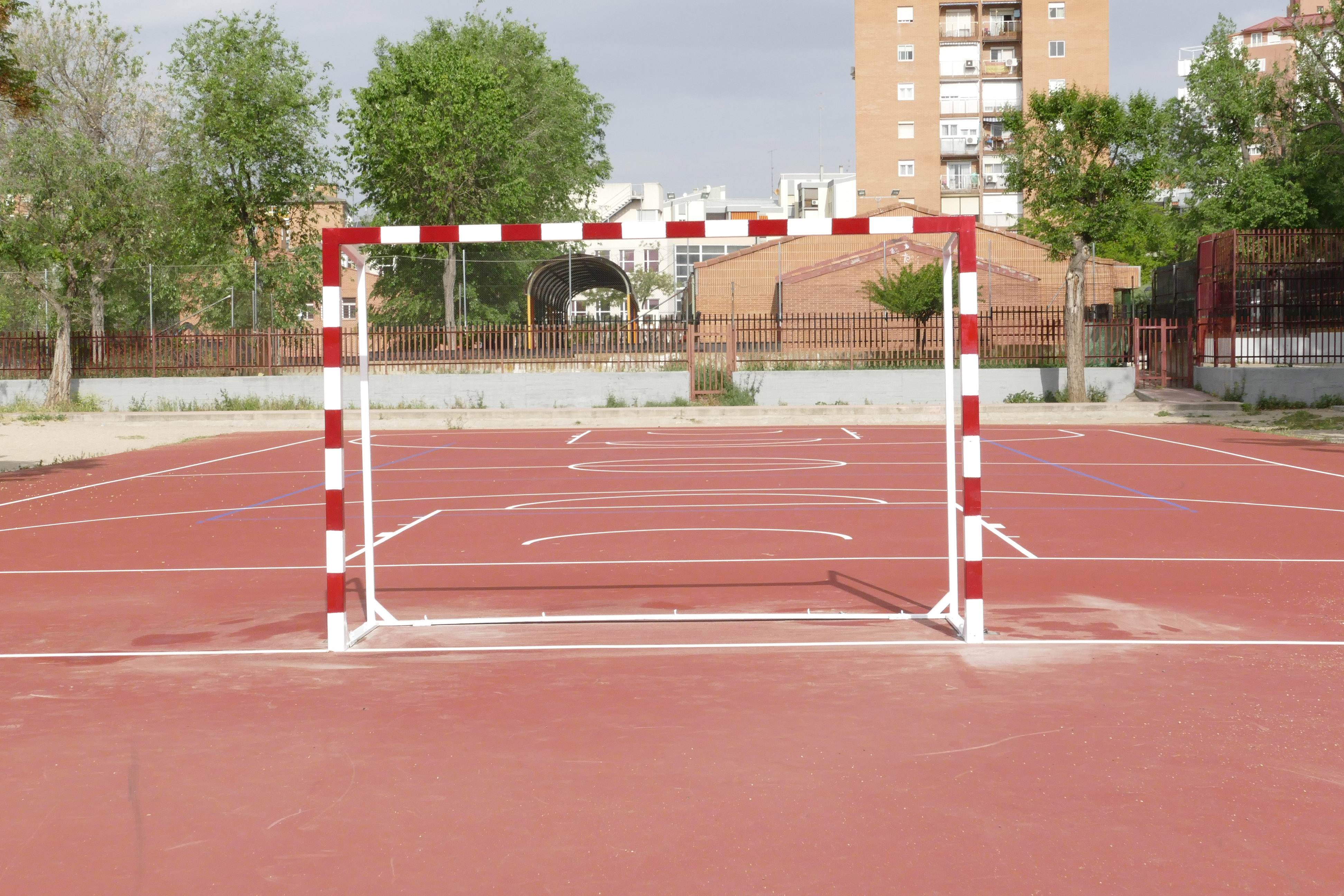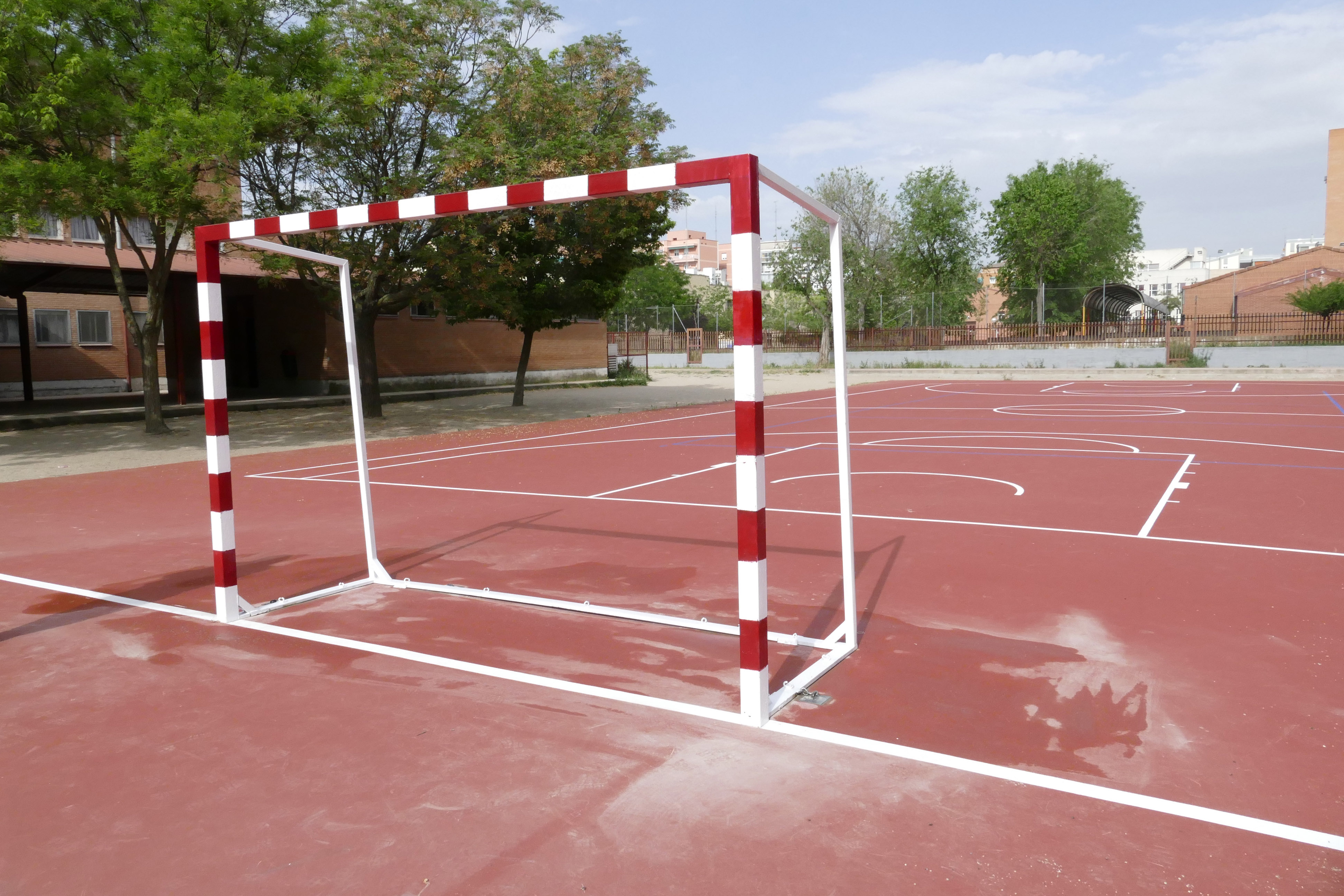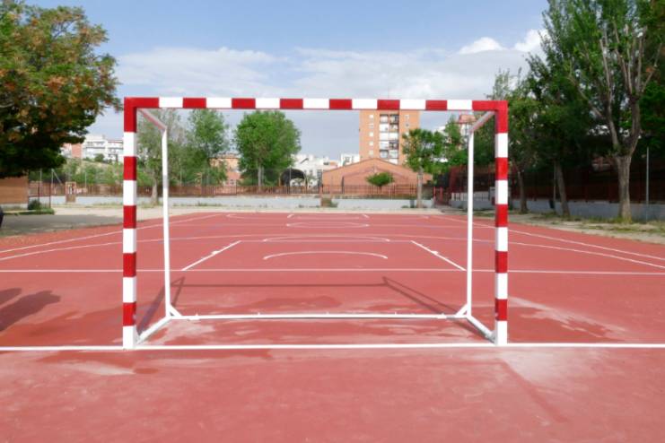 Imagen en alta resolución. Este enlace se abrirá mediante lightbox, puede haber un cambio de contextoEl alcalde de Móstoles, David Lucas, la concejala de Obras, Infraestructuras, Mantenimiento de Vías Públicas y Festejos, Noelia Posse, y la concejala de Educación, Isabel Cruceta, han comprobado "in situ" el resultado del proceso de rehabilitación u mejora de las pistas deportivas exteriores del CEIP León Felipe, donde se ha asfaltado tanto la pista de fútbol como la de baloncesto, así como señalizado las áreas. También están instalando las porterías y canastas.