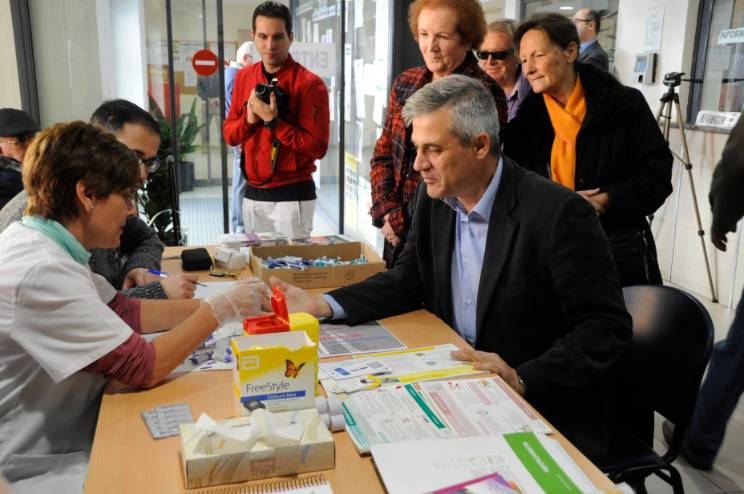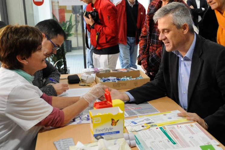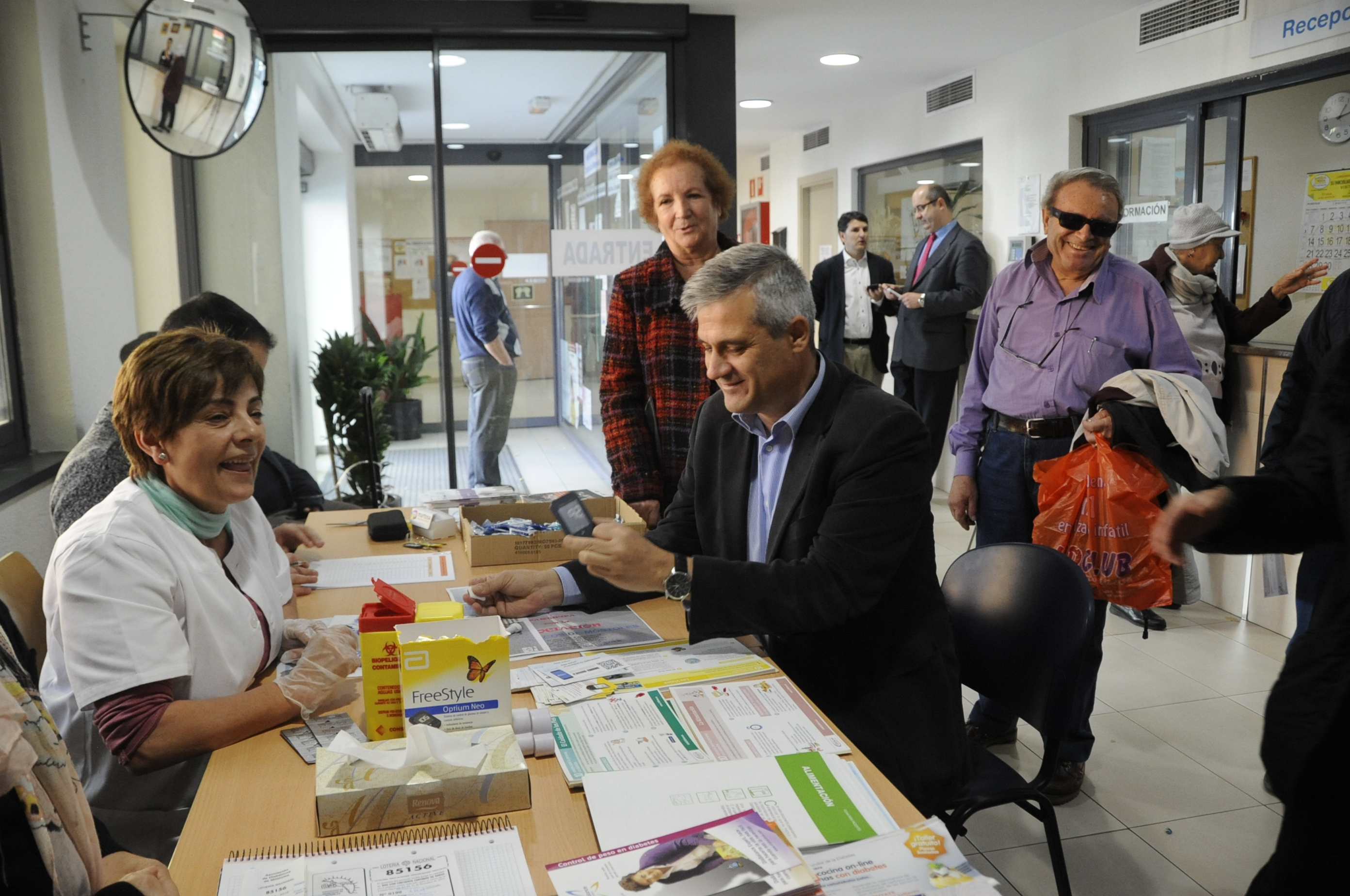 Imagen en alta resolución. Este enlace se abrirá mediante lightbox, puede haber un cambio de contextoEl Alcalde, David Lucas, ha visitado esta mañana acompañado por Ana María Rodrigo, Concejala de Igualdad, Sanidad y Mayores, la mesa informativa instalada por la Asociación de Diabéticos de Móstoles en el Centro de Mayores Juan XXIII en el marco del Día Mundial de la Diabetes (que se celebra todos 14 de noviembre) y en la que se han realizado medidas de glucosa a todas las personas que se han acercado.