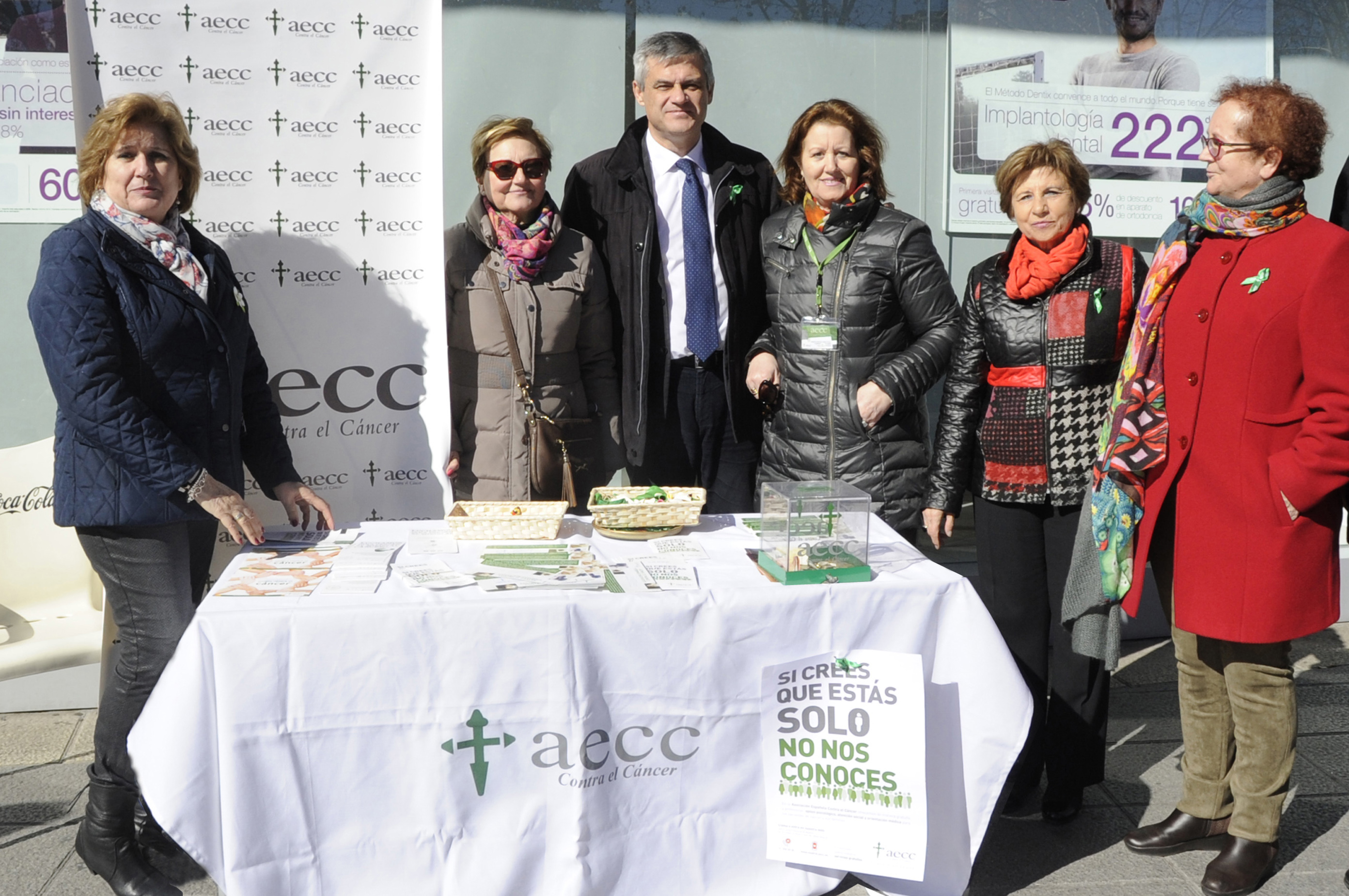 Imagen en alta resolución. Este enlace se abrirá mediante lightbox, puede haber un cambio de contextoLa Asociación Española Contra el Cáncer (aecc), ha instalado una mesa informativa esta mañana en la Plaza del Pradillo, con motivo del Día Mundial contra el Cáncer , que ha recibido la visita del Alcalde de Móstoles, David Lucas, junto a la Concejala de Bienestar Social, Sanidad e Igualdad, Ana María Rodríguez.