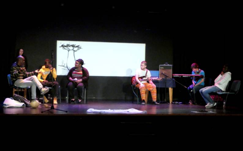 Imagen en alta resolución. Este enlace se abrirá mediante lightbox, puede haber un cambio de contextoAyer se representó en el C.C. Norte Universidad la obra de teatro "Mi poesía es mi manta" a cargo de la Asociación Sin Papeles de Madrid, dentro de las actividades por el 70º Aniversario de la Declaración de Derechos Humanos programadas por el Área de Cooperación y Convivencia. En este proyecto cultural multidisciplinar se combina poesía, hip hop e interpretación escénica, donde se abordan temas de actualidad como la inmigración, la violación de Derechos Humanos de las personas inmigrantes en las fronteras, el racismo institucional al que se ven sometidas y el cuestionamiento de la existencia y funciones de los Centros de Internamiento de Extranjeros (CIEs).