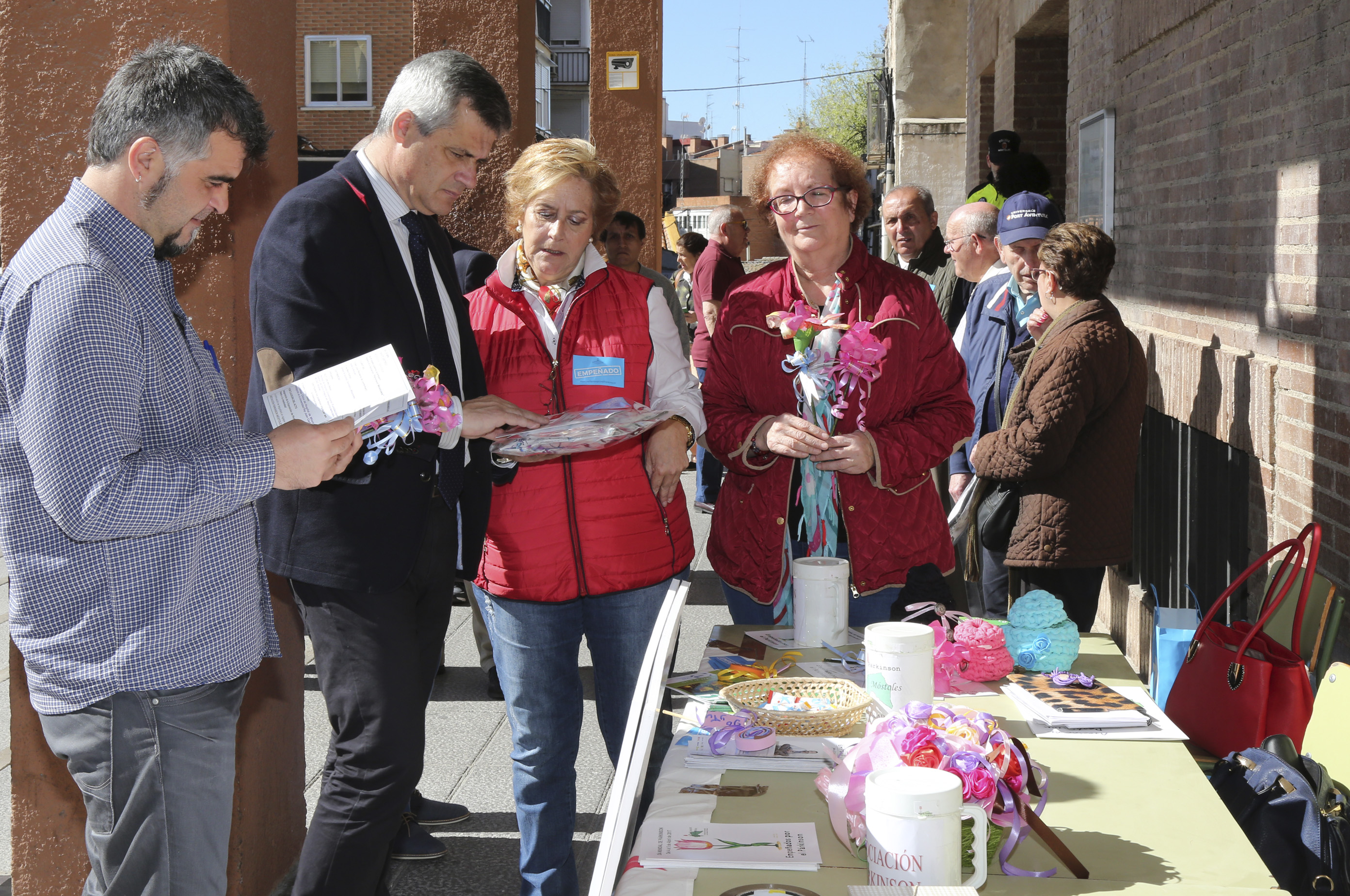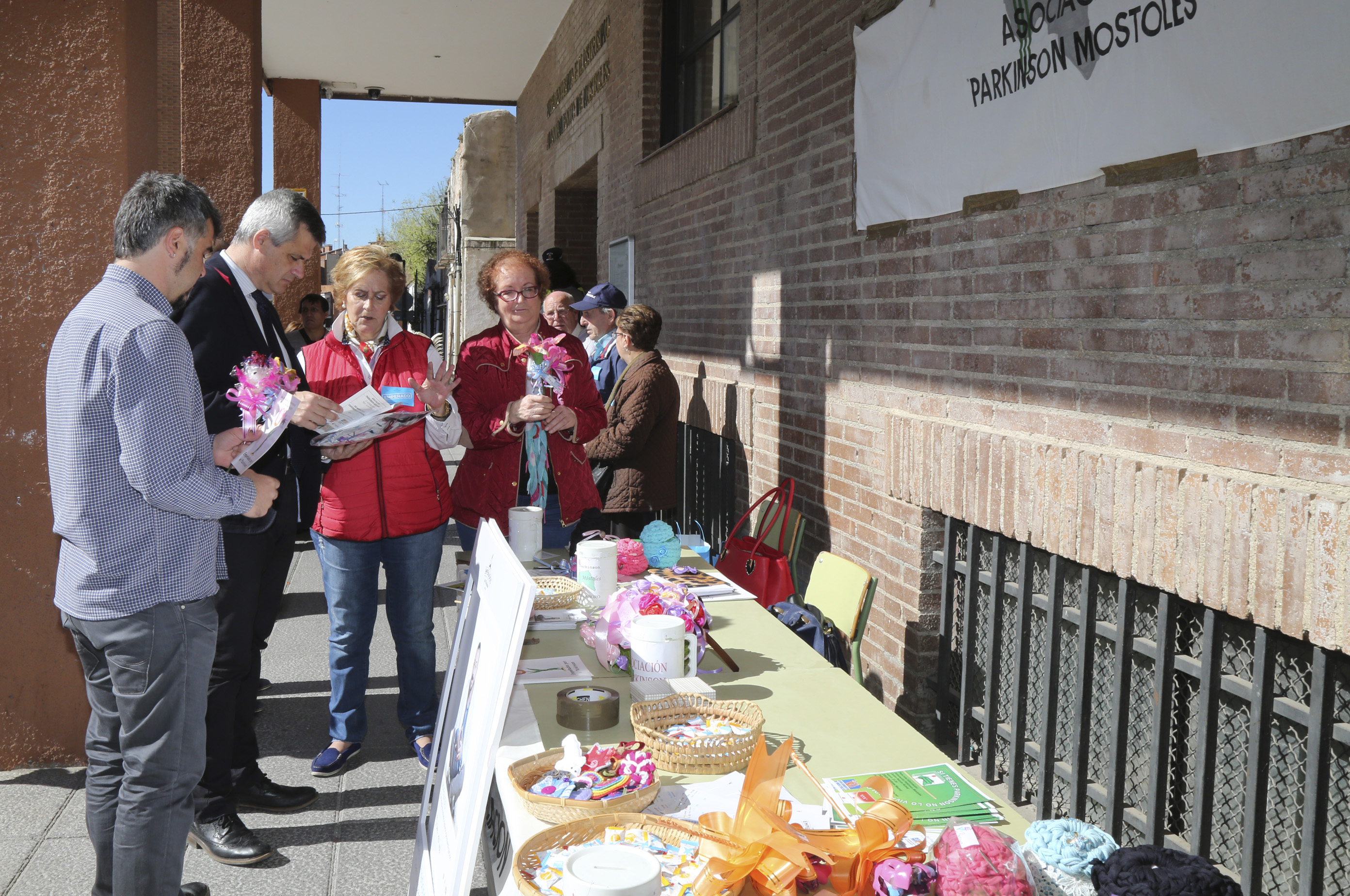 Imagen en alta resolución. Este enlace se abrirá mediante lightbox, puede haber un cambio de contextoEl alcalde de Móstoles, David Lucas, la concejala de Igualdad, Sanidad y Mayores, Ana María Rodrigo y el concejal de Cultura y Bienestar Social, Gabriel Ortega, han visitado esta mañana la mesa informativa instalada por la Asociación Párkinson Móstoles junto al Ayuntamiento, que forma parte de las actividades organizadas por dicha Asociación con motivo del Día Mundial del Párkinson que se celebra todos los 11 de abril. Este año el lema elegido por la OMS es `Empeñados por el Párkinson´.