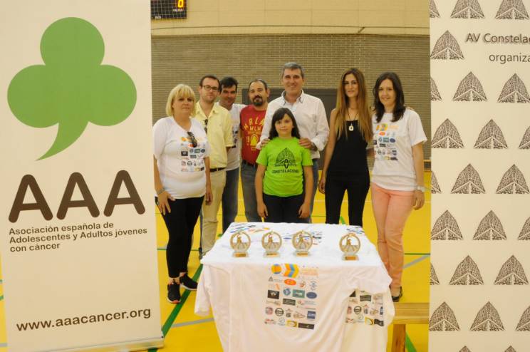 La Asociación de Vecinos Constelaciones Móstoles Sur organizó el pasado sábado en el Polideportivo Los Rosales una exhibición de voleibol, a la que asistió el concejal de Cultura y Deportes, Agustín Martín, con el objetivo de visibilizar la problemática que afecta a las personas jóvenes con cáncer a través de La Asociación Española de Adolescentes y Adultos Jóvenes con cáncer (AAA).
