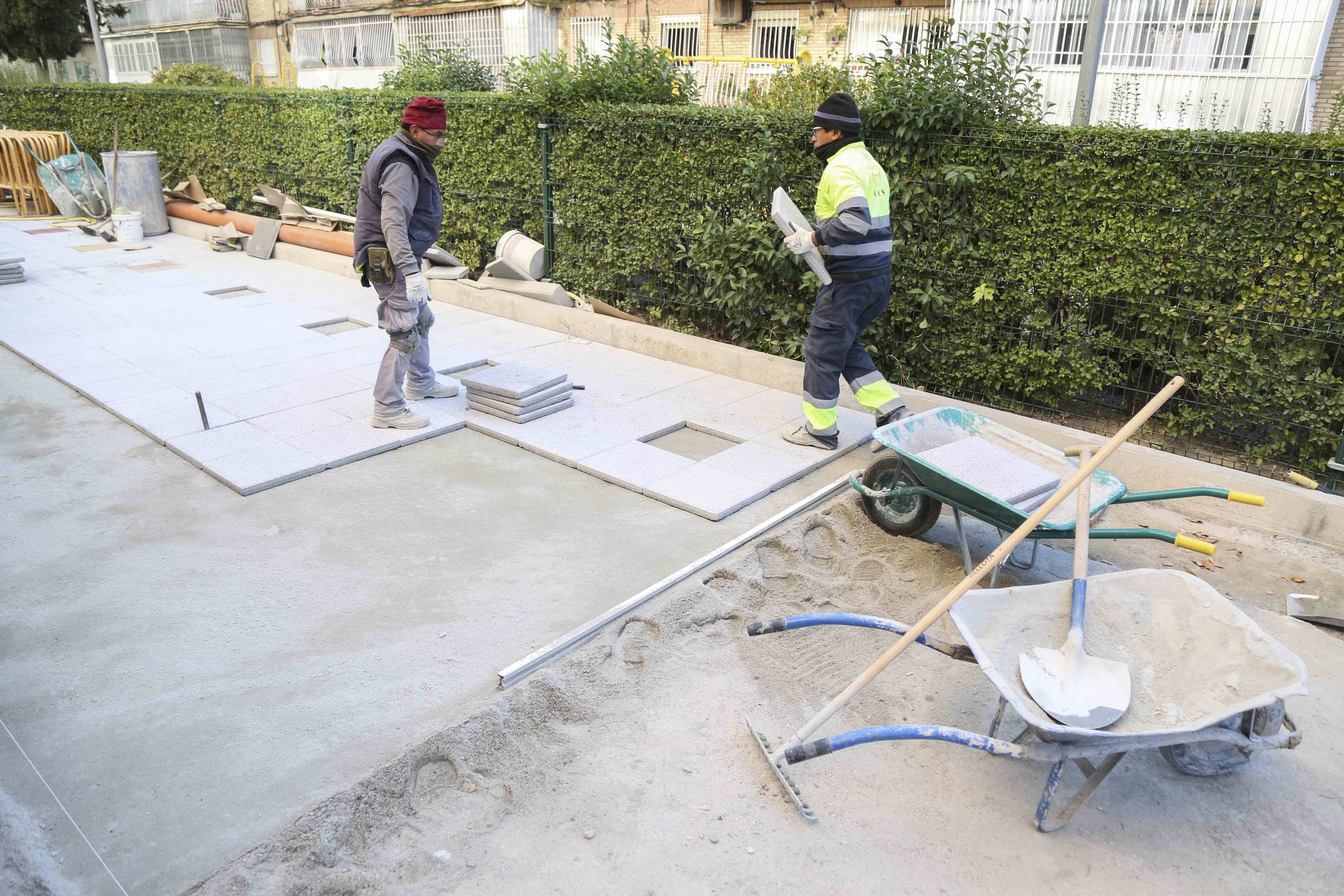 Las obras están consistiendo en la peatonalización del espacio. Para ello se están instalando baldosas con alto rendimiento en durabilidad y antideslizantes, que estarán salpicadas por losetas de colores. Esta combinación de materiales genera una original disposición de las baldosas en el suelo, dando como resultado un diseño más moderno.