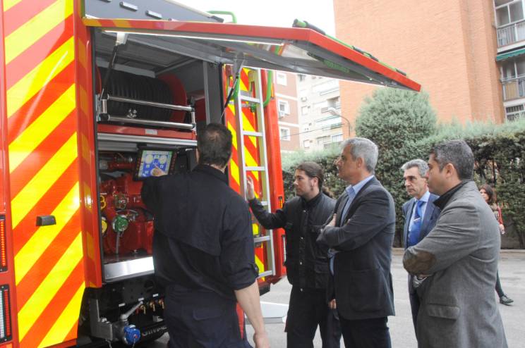 FOTO DESTACADO Presentación camión de Bomberos 294Imagen en alta resolución. Este enlace se abrirá mediante lightbox, puede haber un cambio de contextoFOTO DESTACADO Presentación camión de Bomberos 294El alcalde de Móstoles, David Lucas, junto al concejal de Presidencia, Seguridad Ciudadana y Movilidad, Roberto Sánchez, ha presentado un nuevo vehículo para la extinción de incendios, adquirido por el Ayuntamiento para el Parque de Bomberos. El vehículo está dotado con el último desarrollo tecnológico para prestar un mejor servicio a la ciudadanía, más rápido, seguro y eficaz.