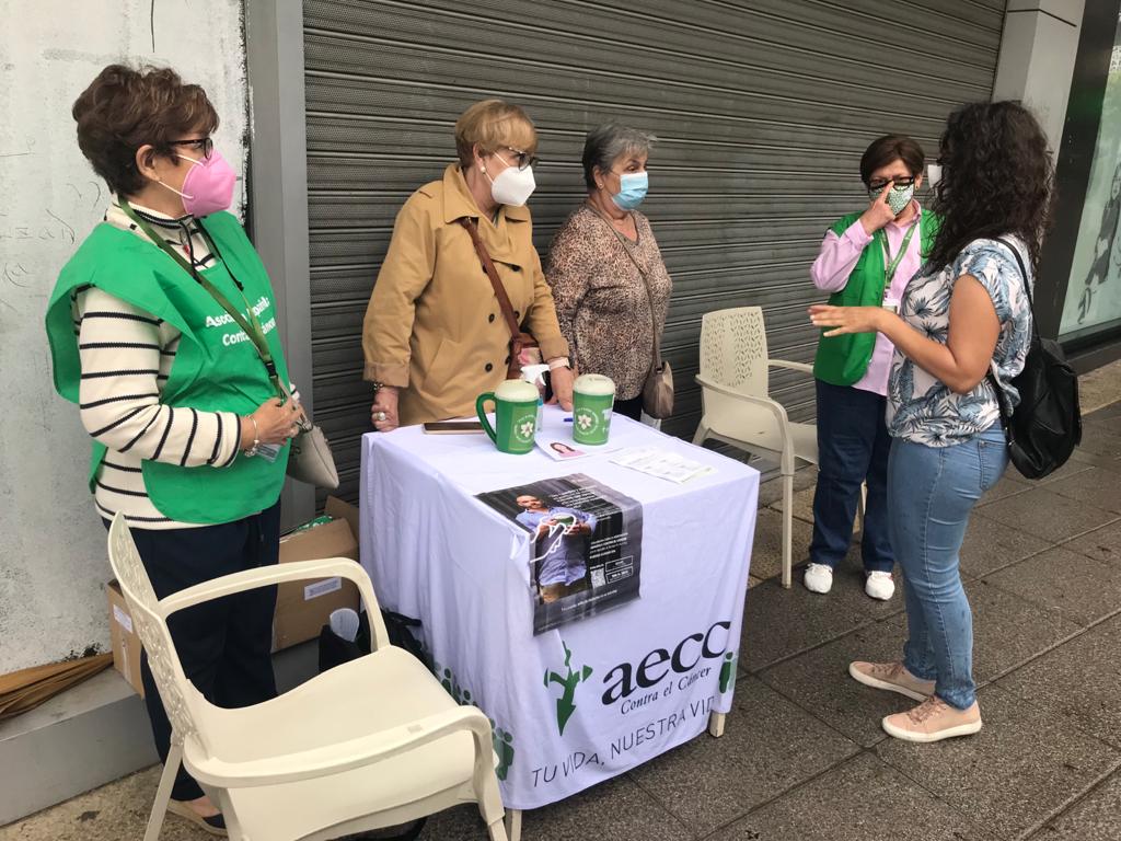 La Concejala de Derechos Sociales y Mayores, Ángela Viedma, ha visitado una de ellas, en la Plaza del Pradillo (junto a calle de los Órganos), donde ha mantenido un encuentro con Emilia Quiroga Castillo e Isabel Martín Lorenzo, Presidenta y Secretaria de la AECC en Móstoles, respectivamente, así como con las voluntarias de la Asociación.