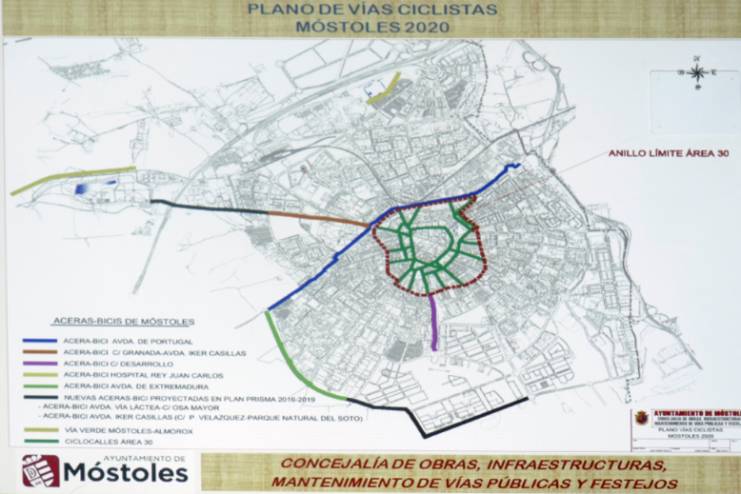 Además, Móstoles cuenta con una red de "Ciclo Calles" que incluye todo el viario existente dentro del anillo formado por las calles comprendidas dentro del Área 30, con la correspondiente señalización vertical y horizontal. Esta red está integrada por la Avenida Portugal, calle Zaragoza, calle Logroño, calle Huesca, calle Las Palmas, calle San Marcial y la Avenida Constitución.