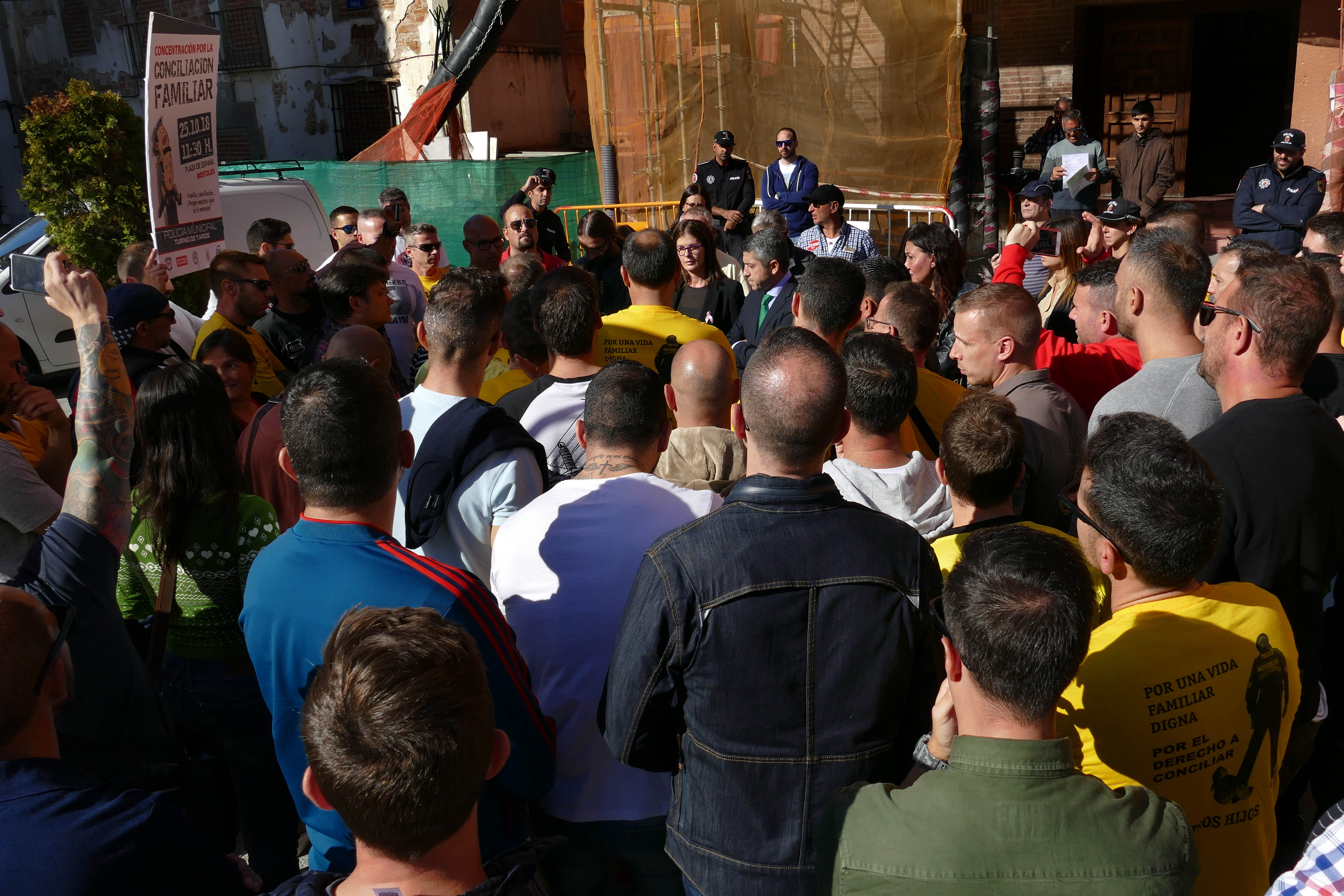protesta policia 1Imagen en alta resolución. Este enlace se abrirá mediante lightbox, puede haber un cambio de contextoprotesta policia 1El concejal de Presidencia, Seguridad Ciudadana y Comunicación del Ayuntamiento de Móstoles, Roberto Sánchez, espera respuesta a su propuesta, trasladada, tras varias reuniones, a los representantes de los trabajadores, de reducir la jornada laboral de los policías municipales del turno de tarde a 1.368 horas anuales, distribuidas en 161 jornadas de trabajo, lo que supone que trabajarían 14 días al mes.