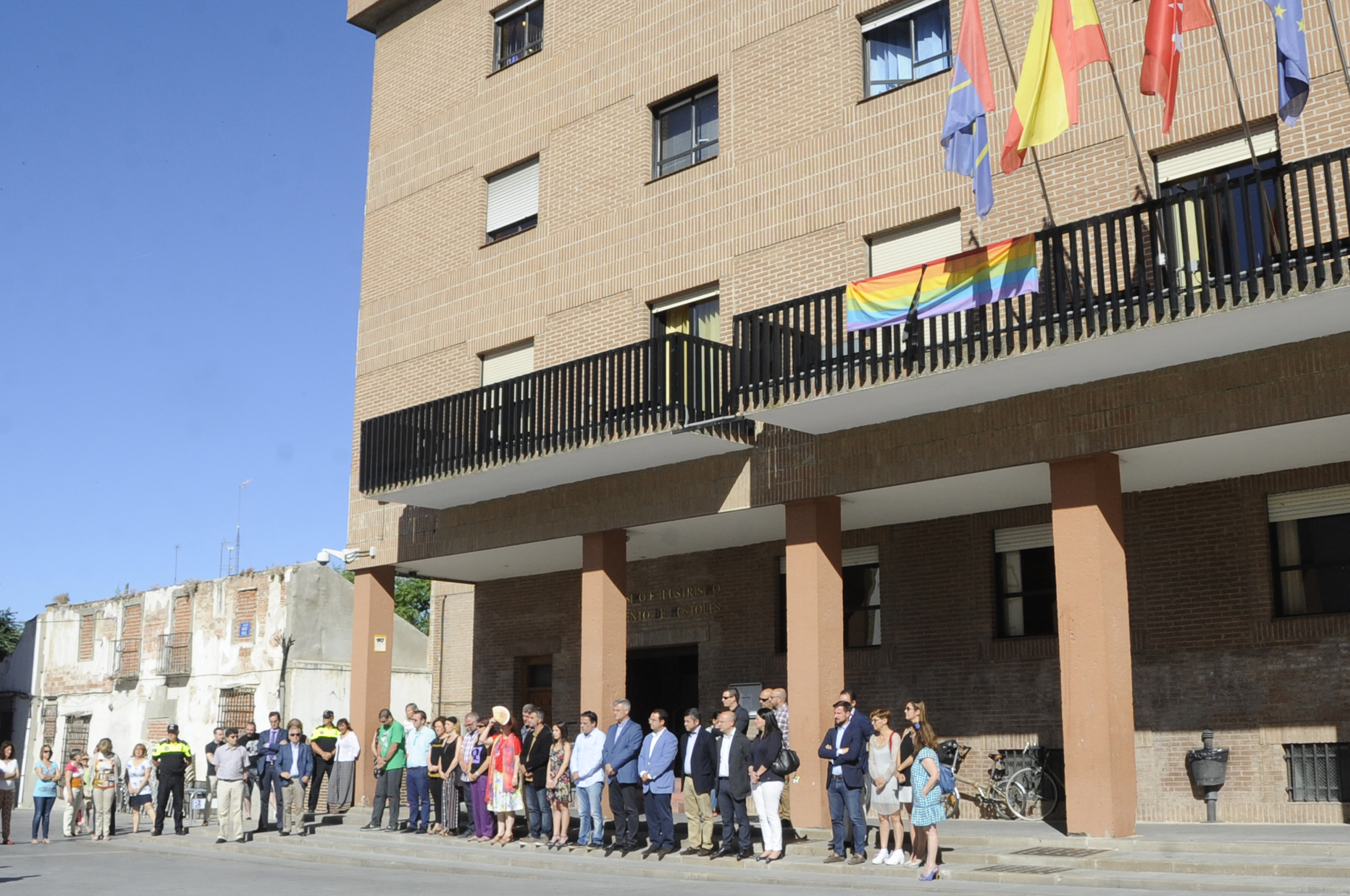 Imagen en alta resolución. Este enlace se abrirá mediante lightbox, puede haber un cambio de contextoLa bandera multicolor, que simboliza el movimiento LGTB, cuelga desde esta mañana con un crespón negro en el balcón municipal como homenaje a las víctimas del ataque terrorista perpetrado en Orlando (EE.UU.).