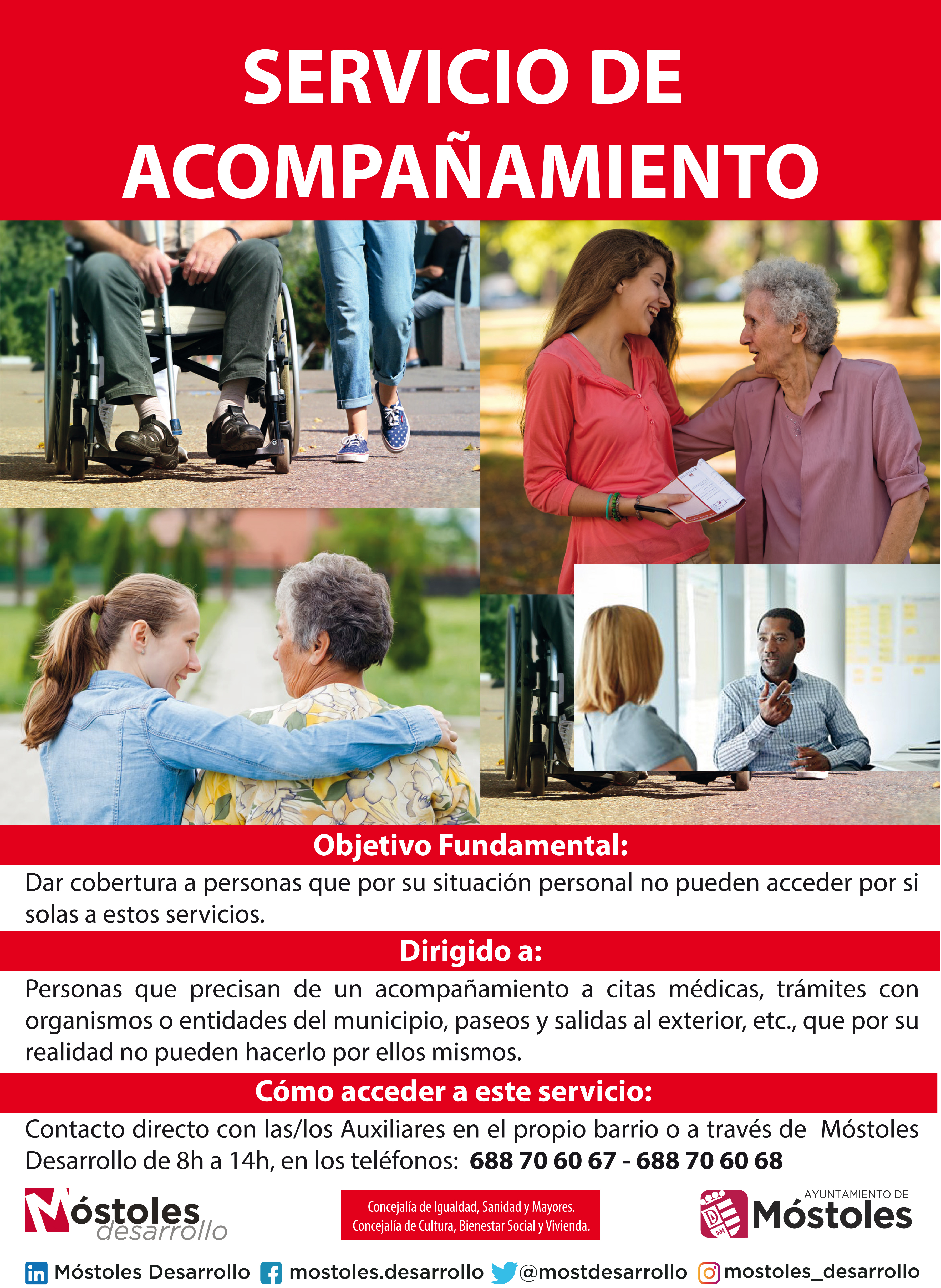 Es así como, a partir del 1 de abril del 2019 van a comenzar a prestar servicios como Auxiliares de Acompañamiento en el municipio de Móstoles a personas dependientes Para poder acceder a este servicio gratuito las personas afectas que lo requieran tendrán que ponerse en contacto directo a través de Móstoles Desarrollo de 8 a 14 horas de Lunes a Viernes o en los teléfonos: 688 70 60 67 – 688 70 60 68.