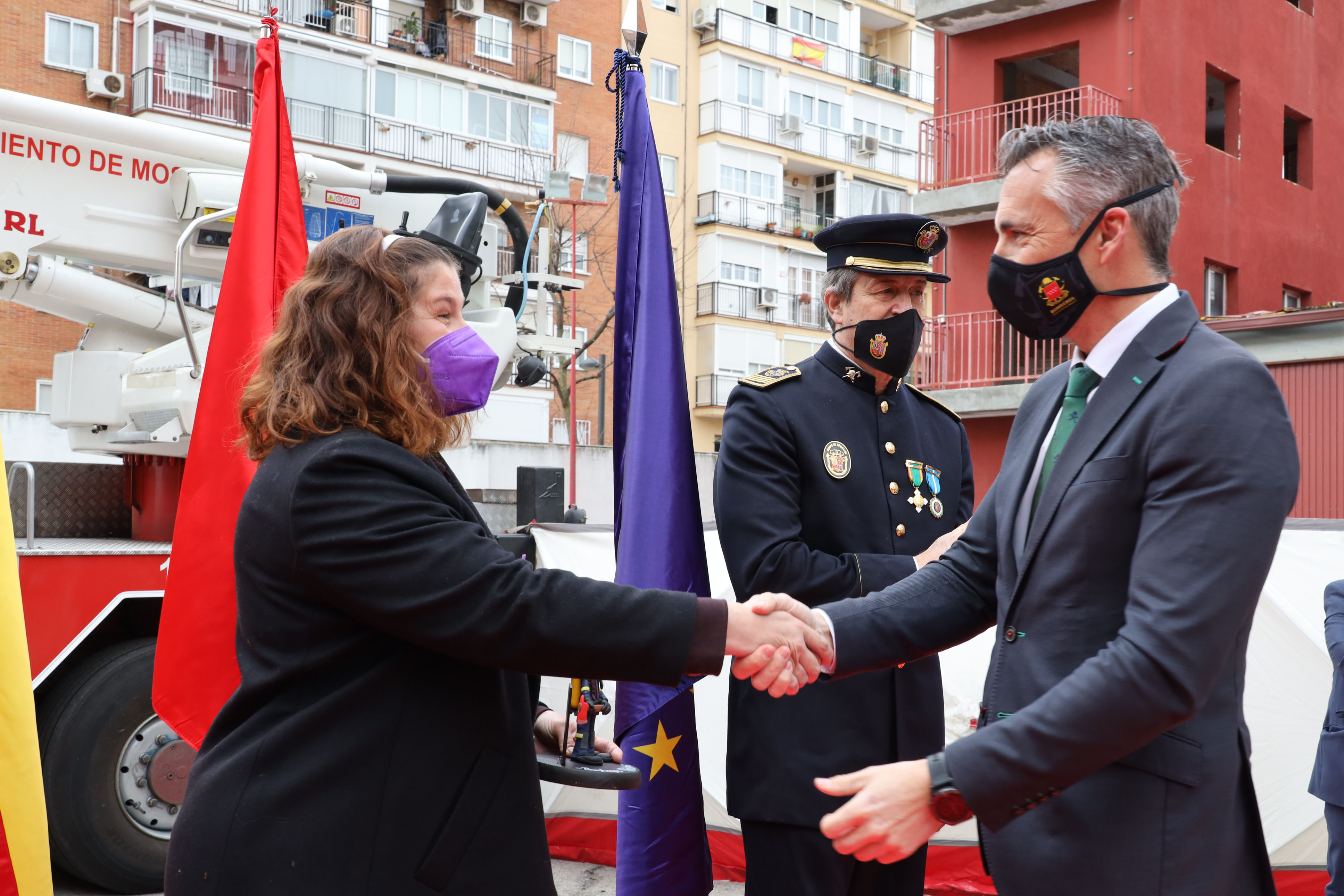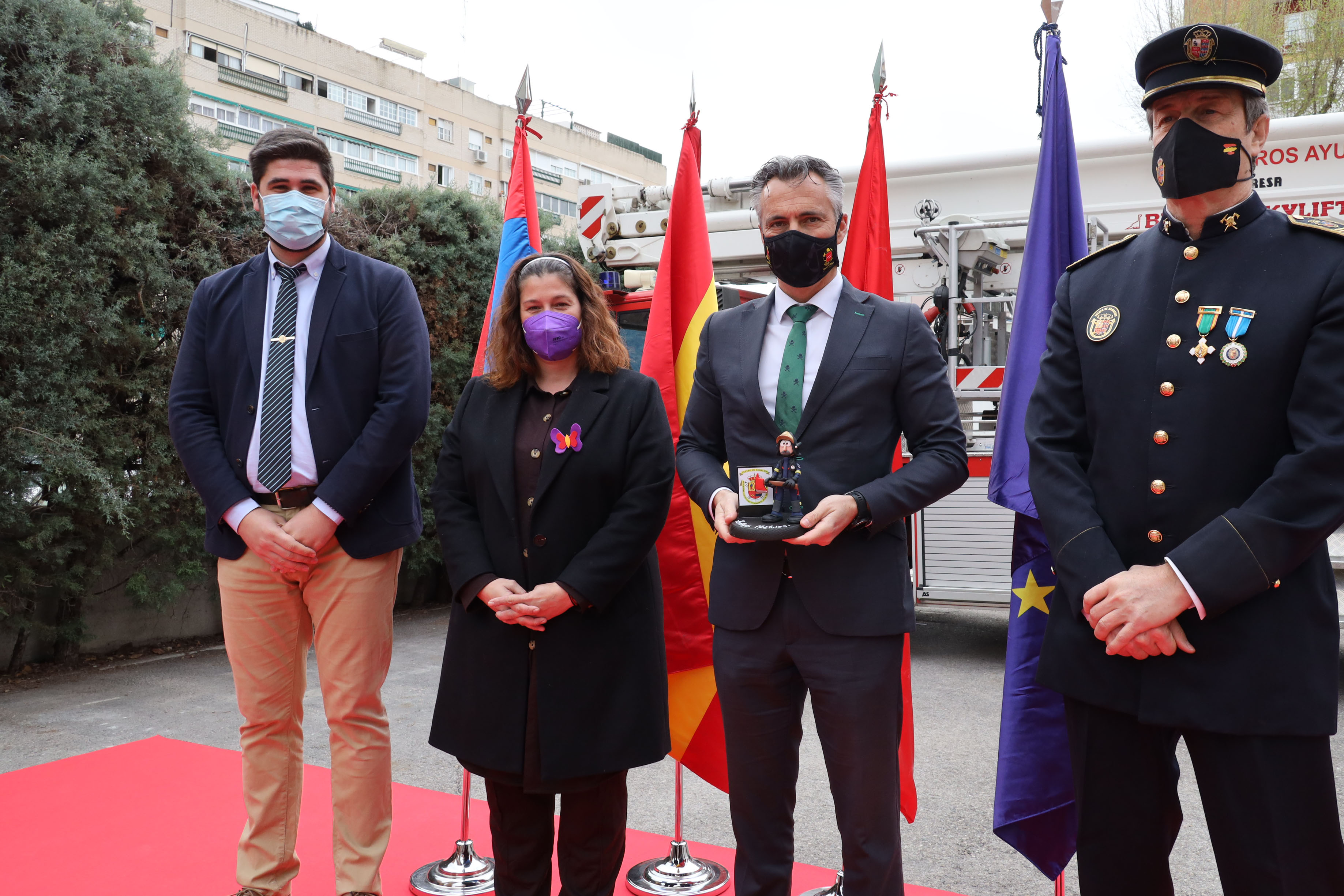 El acto ha estado presidido por la Alcaldesa de Móstoles, Noelia Posse, con la asistencia del Concejal de Seguridad, Convivencia, Cultura y Transición Ecológica, Álex Martín, la Portavoz de Podemos, Mónica Monterreal, el Jefe de Bomberos Javier Guijarro, el Comisario Jefe de la Policía Municipal, Juan Manuel Arribas, el Comisario Jefe de la Policía Nacional, David Cervera, y el Viceconsejero de Interior y Director de la Agencia de Seguridad y Emergencias de la Comunidad de Madrid, Carlos Novillo, y otros miembros de la Corporación Municipal.