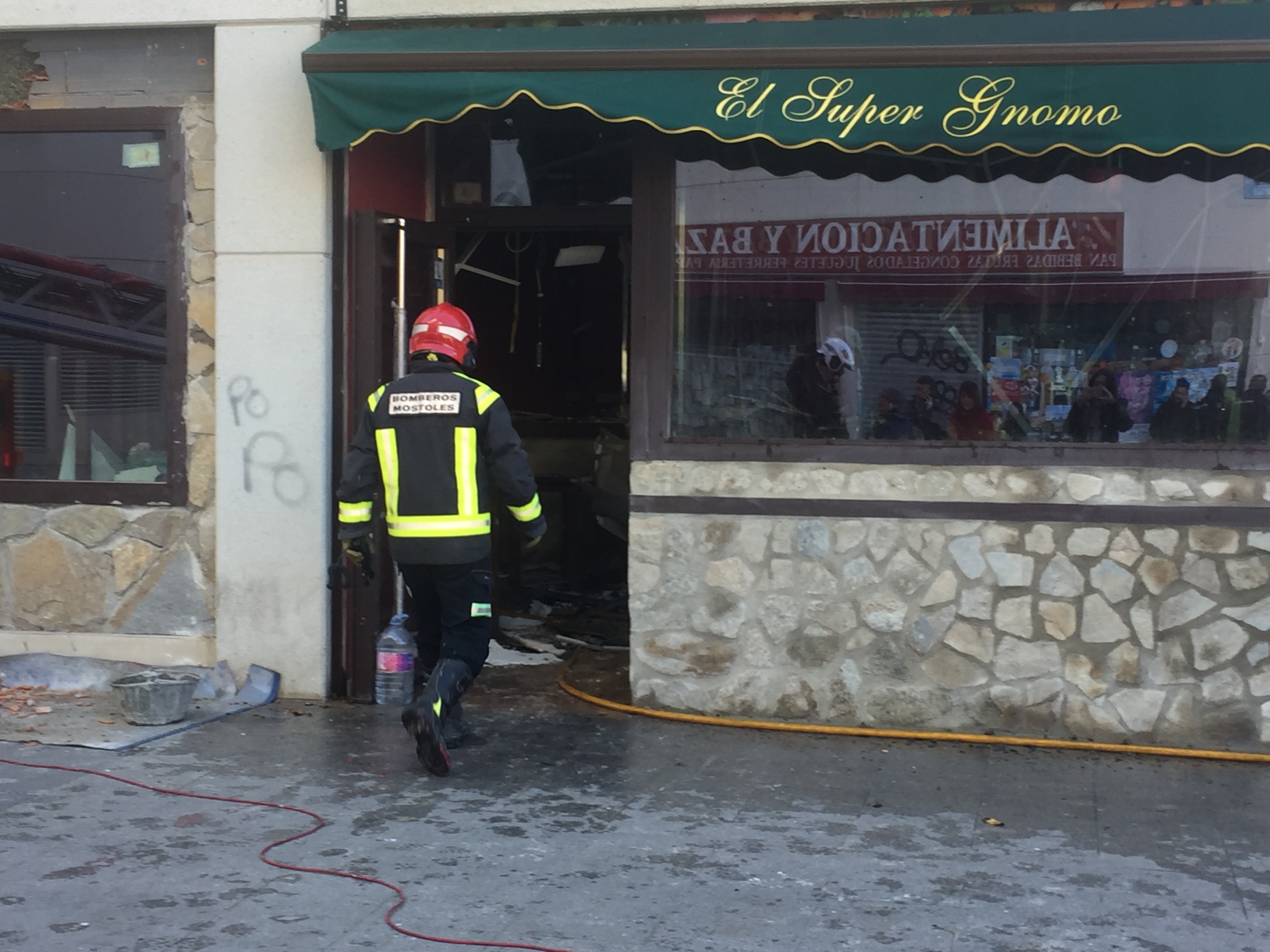 Imagen en alta resolución. Este enlace se abrirá mediante lightbox, puede haber un cambio de contexto24 bomberos, de las dos dotaciones de Móstoles, han intervenido esta mañana en los trabajos de extinción de un incendio declarado en un local en reformas en la esquina de los bloques de viviendas 27 y 29 de la calle Perseo del PAU4 de Móstoles.