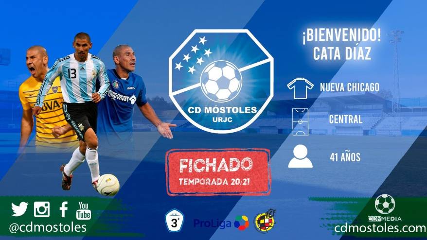 El CD Móstoles ha confirmado la incorporación de Cata Díaz a su primera plantilla de cara a la próxima temporada y el jugador espera ponerse a las órdenes de Víctor González en breve. El jugador, defensa central, tiene una experiencia acreditadísima en la élite, no en vano cuenta con una Copa del Rey, una Supercopa Europea y un subcampeonato de Copa América en su espectacular palmarés. El veterano central quiere volver al fútbol en activo y lo hace de la mano del CD Móstoles, sabedor que aún le queda muchas alegrías por dar a su nueva afición.