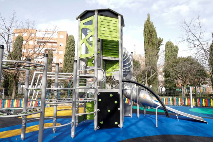 La nueva área recreativa tiene una extensión de más de 250 m2 y suelo de seguridad de caucho para amortiguar las caídas. Las entradas y caminos interiores son accesibles e inclusivos para facilitar el uso y disfrute de menores con problemas de movilidad.
