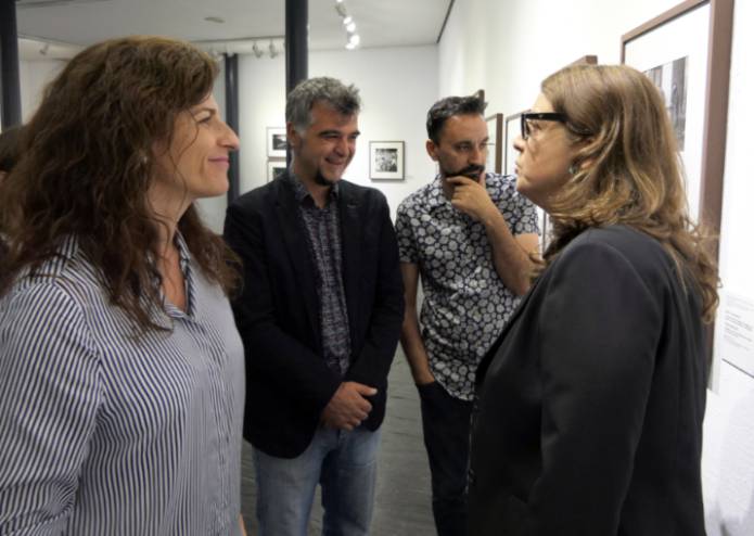 El concejal de Cultura, Bienestar Social y Vivienda, Gabriel Ortega, el concejal adjunto de Cultura, Alfonso Vinuesa, la comisaria de la exposición, Lucía Laín, Almudena Hernández de la Torre, responsable de exposiciones de la Subdirección General de Bellas Artes y Luis Fernando de la Sota Navas, técnico de la Red ITINER han recorrido esta mañana la muestra colectiva "Nocturnas. A la luz de Madrid (1900-1950), perteneciente a la Red ITINER de la Comunidad de Madrid.