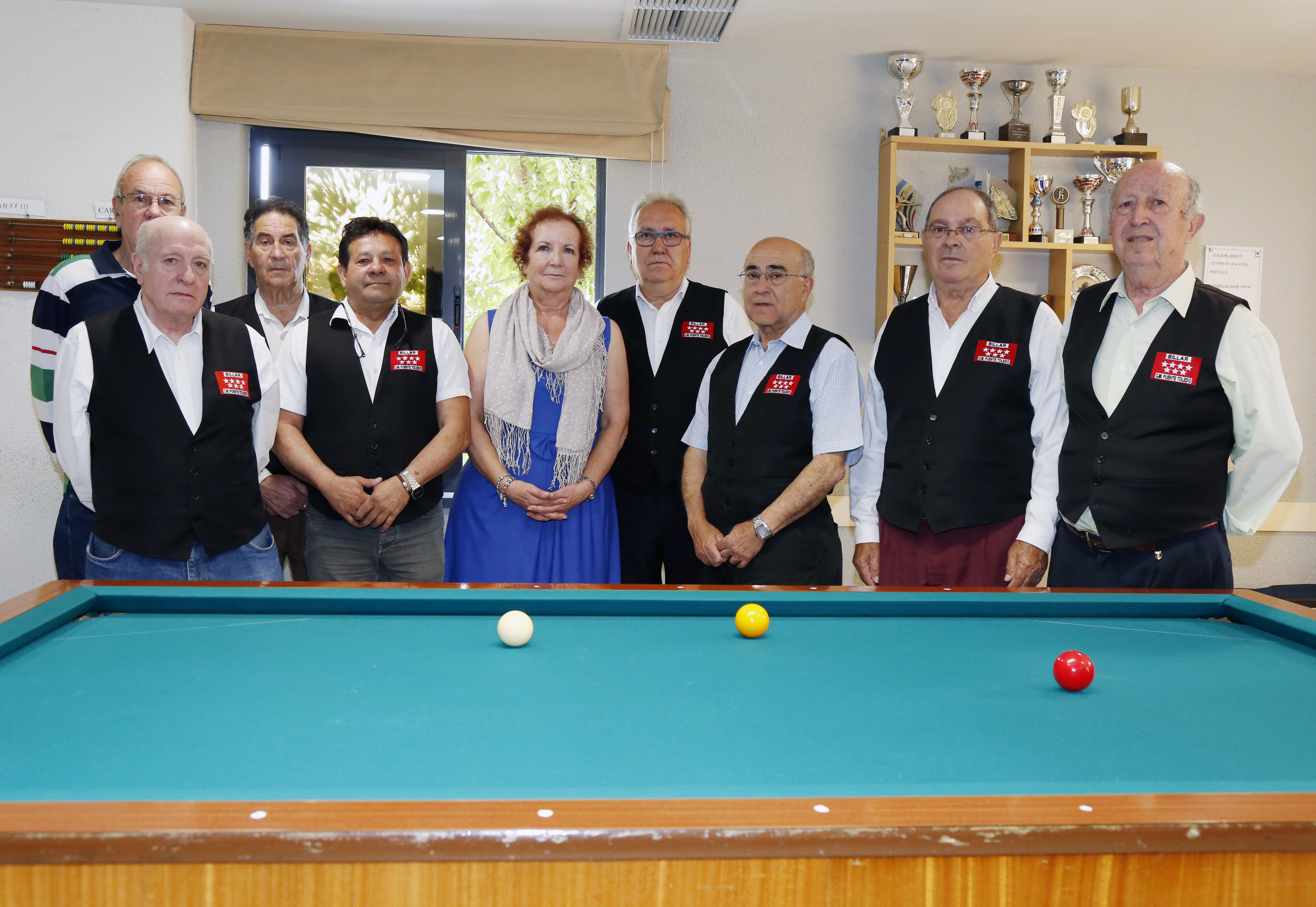 Imagen en alta resolución. Este enlace se abrirá mediante lightbox, puede haber un cambio de contextoEsta mañana se ha celebrado en el Centro Municipal de Mayores Juan XXIII, el partido de liga entre el equipo de billar de dicho centro (en esta ocasión como anfitrión) y el del Centro de Mayores de Puerta de Toledo. Los jugadores han contado con la visita de Ana María Rodrigo Gª, concejala de Bienestar Social, Sanidad e Igualdad.