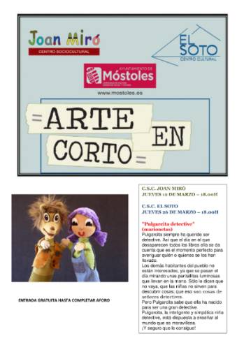 El Centro Sociocultural Joan Miró presenta un espectáculo de marionetas dentro de ‘Arte en Corto’