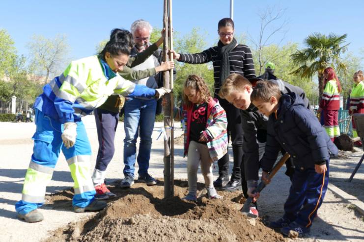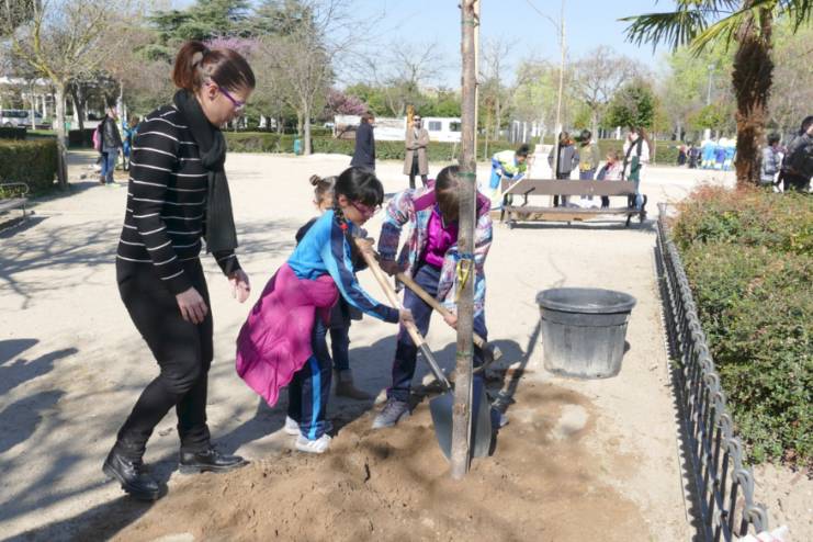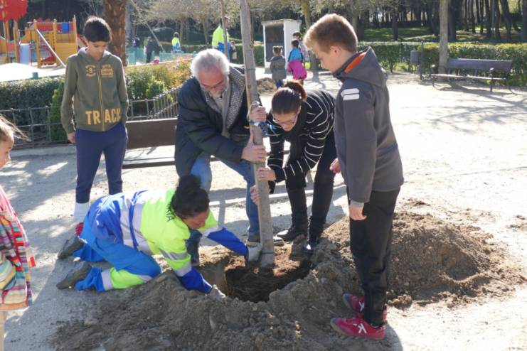 Imagen en alta resolución. Este enlace se abrirá mediante lightbox, puede haber un cambio de contextoAlrededor de 200 estudiantes de Educación Primaria, junto a sus profesores, de los colegios Gabriel Celaya, Príncipe de Asturias, Joan Miró, Julián Besteiro, Andrés Segovia, Luis Álvarez Lencero, Pablo Sorozábal y Río Bidasoa han participado esta mañana en una plantación de diversas especies arbóreas en el Parque Finca Liana con motivo del Día Mundial del Árbol. Esta iniciativa pretende hacer partícipes a los más pequeños en el cuidado de la naturaleza, así como inculcarles, de forma pedagógica, el interés por las distintas especies vegetales, la importancia de velar por el medio ambiente en el que vivimos y que tomen conciencia de lo que tarda en desarrollarse un ser vivo como es un árbol, que necesita un cuidado y una atención especial. En la plantación han estado presentes la alcaldesa de Móstoles, Noelia Posse y el concejal de Medio Ambiente, Parques y Jardines y Limpieza Viaria, Miguel Ángel Ortega.