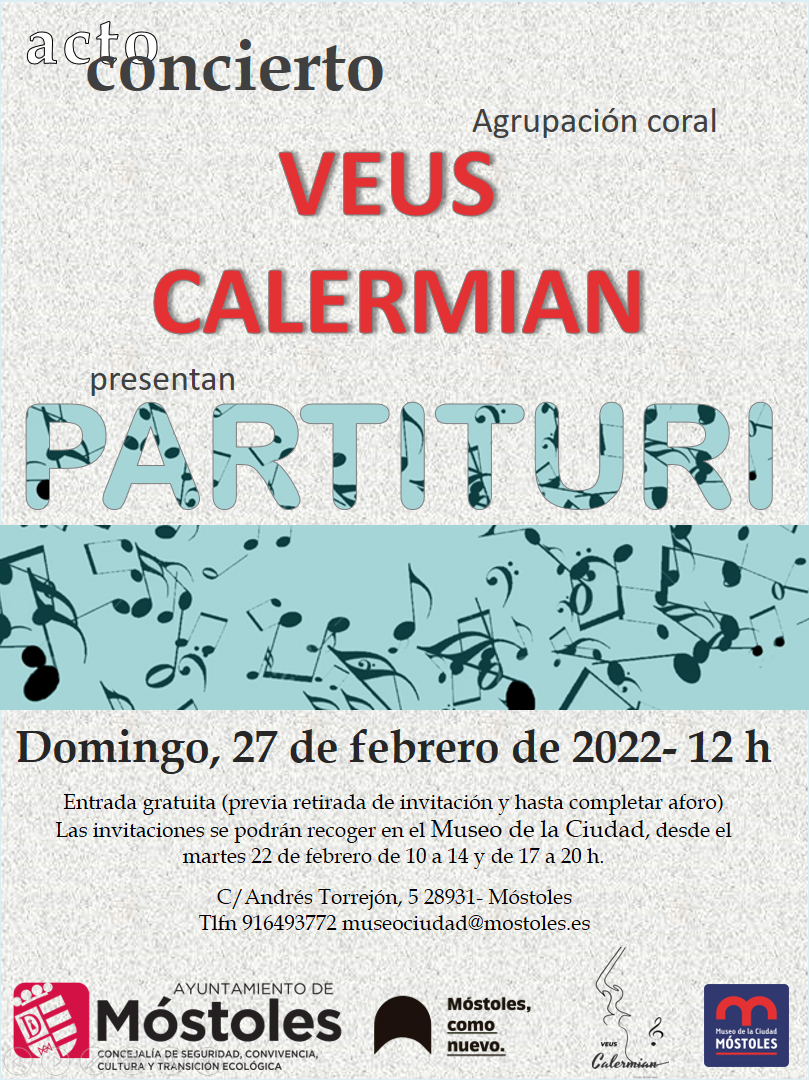 El domingo 27 de febrero el Museo de la Ciudad acogerá un concierto del grupo musical "Veus Calermian" que interpretará la obra "Partituri" a las 12:00 h.
