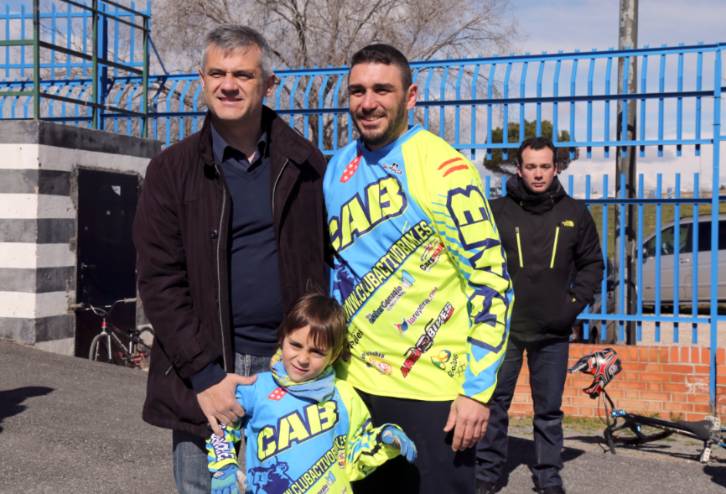 El primer edil de Móstoles, David Lucas, y el concejal de Deportes, Agustín Martín, asistieron a la presentación de la nueva equipación del Club Activo BMX.