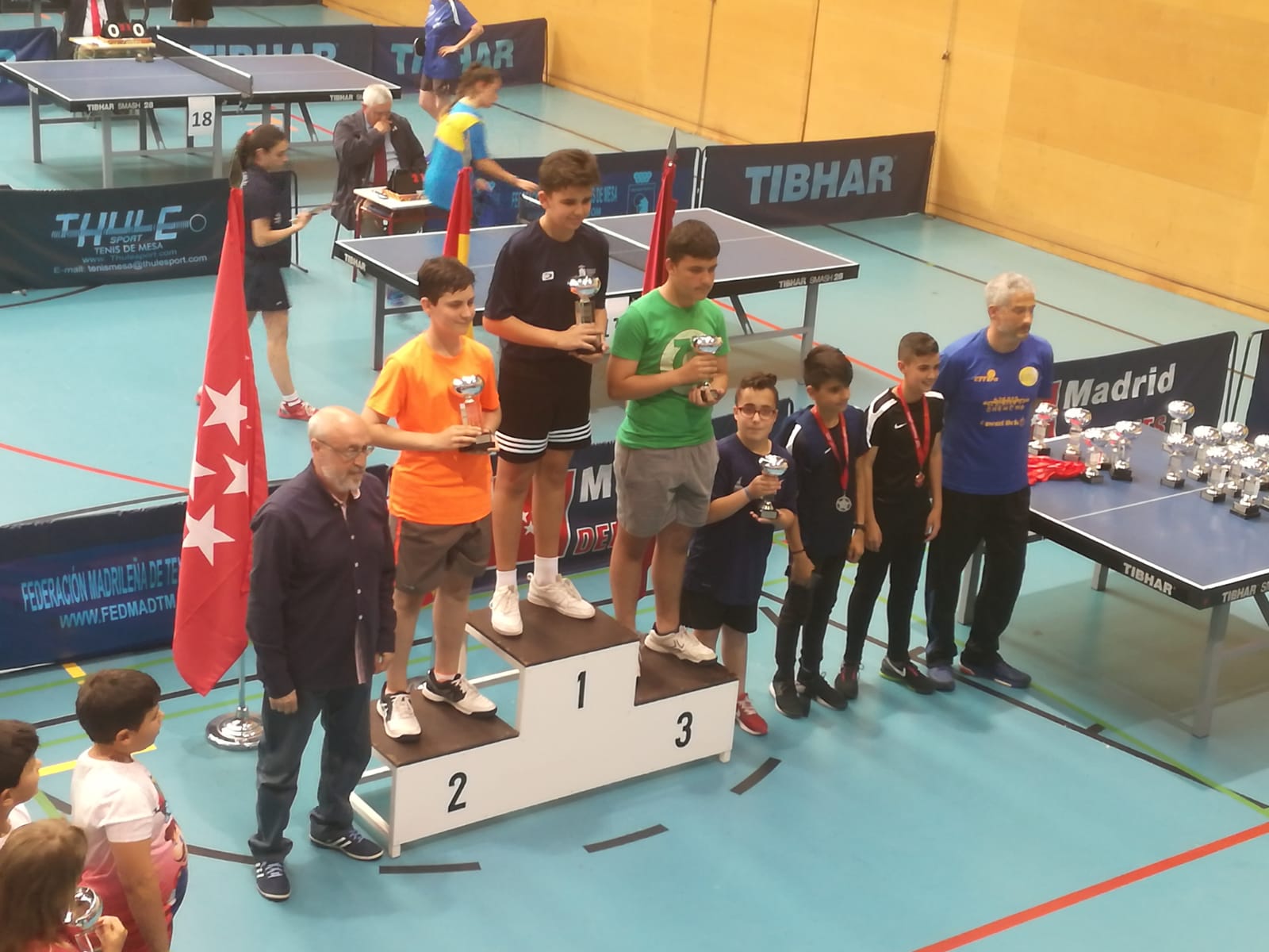Imagen en alta resolución. Este enlace se abrirá mediante lightbox, puede haber un cambio de contextoEste fin de semana se han celebrado dos campeonatos en el polideportivo Municipal de Pedrezuela con gran éxito para el Club Tenis de Mesa Móstoles; por un lado se ha celebrado la Final Autonómica de Deporte Infantil para jugadores no federados con una gran actuación de Marcos Cano que llegó a los cuartos de final en Infantil Masculino, de Javier Díaz que también en Infantil masculino consiguió el cuarto puesto y ya en Cadete Masculino Pablo Fernandez quedó campeón. En la otra competición del fin de semana en el Campeonato de Madrid de Edades se consiguieron dos medallas; en Infantil Femenino Ana Gónzalez consiguió quedar tercera y Pablo Lozano en Senior Masculino consiguió otro tercer puesto.