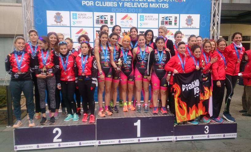 Imagen en alta resolución. Este enlace se abrirá mediante lightbox, puede haber un cambio de contextoDurante los días 24 y 25 de marzo, en la localidad coruñesa de Boiro, tuvo lugar el Campeonato de España de Duatlón por Clubes y Relevos Mixtos. El equipo femenino del Club Triatlón Clavería de Móstoles, participando en Primera División, consiguió terminar en segunda posición totalizando 985 puntos.