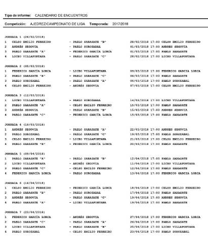 El calendario de la liga municipal de ajedrez con los colegios inscritos y las fechas de realización son las siguientes: