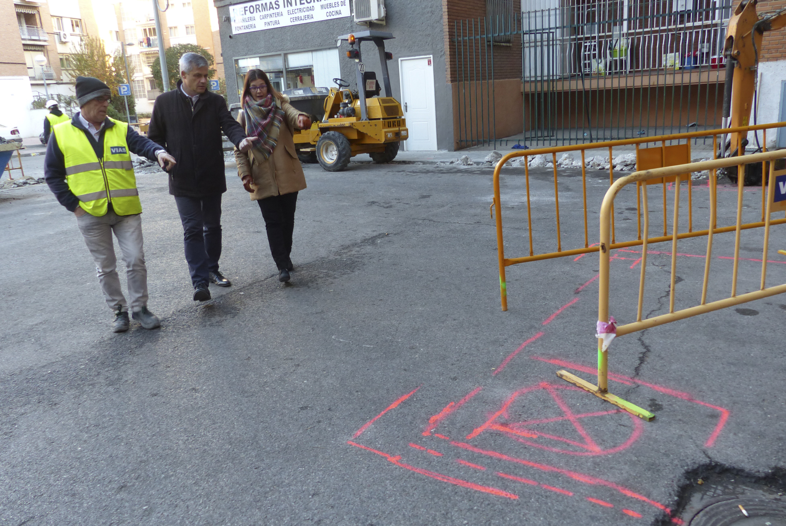 Imagen en alta resolución. Este enlace se abrirá mediante lightbox, puede haber un cambio de contextoEl alcalde de Móstoles, David Lucas y la concejala de Obras, Infraestructuras, Mantenimiento de Vías Públicas y Festejos, Noelia Posse han visitado las obras de remodelación de la Calle Zaragoza, de los Presupuestos Participativos en la Junta de Distrito nº 1.