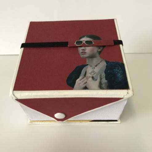 • Premio dotado con 1.000 € a la obra Esclavas siglo XXI de Ana González Rodríguez por ser una pieza de corte poético e intimista que altera el formato tradicional del libro estableciendo una narrativa no lineal y tridimensional, usando imagen y palabra de forma sintética y dejando ver su delicada factura a mano. La elección de caja y su pequeño formato es coherente con el tema de la mujer como contenedor de vida y su asociación a la casa y a espacios enclaustrados poco visibles, configurando una pieza de denuncia social desde el Arte.