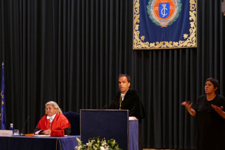 Como cada año, el curso ha comenzado de manera oficial con un acto académico, en esta ocasión presidido por primera vez por el rector Javier Ramos López. En esta edición, se ha procedido a la lectura de una lección magistral por parte del profesor e investigador de la ETSII, Miguel Ángel Otaduy Tristán. A continuación, se han entregado medallas honoríficas de la URJC.