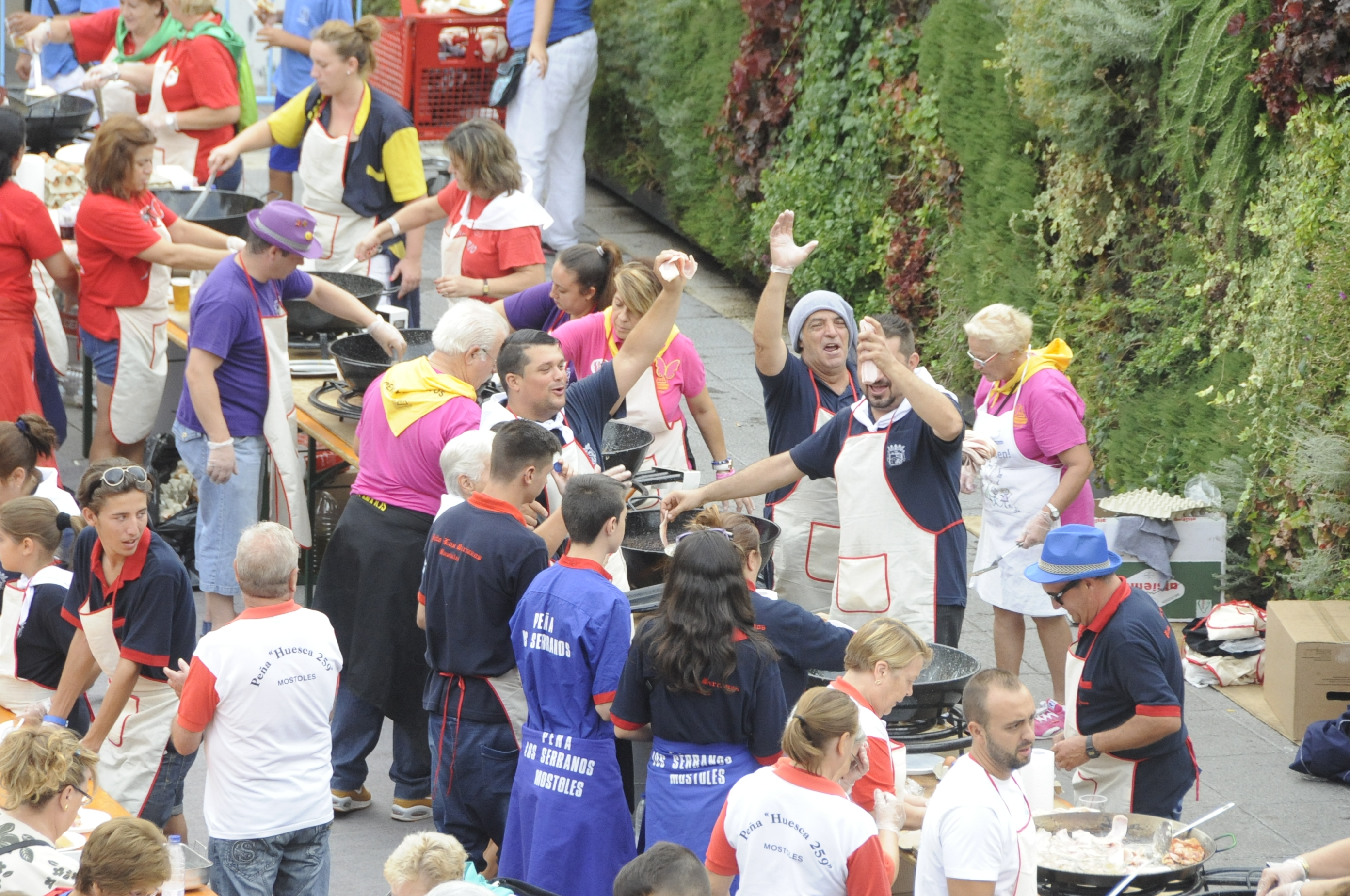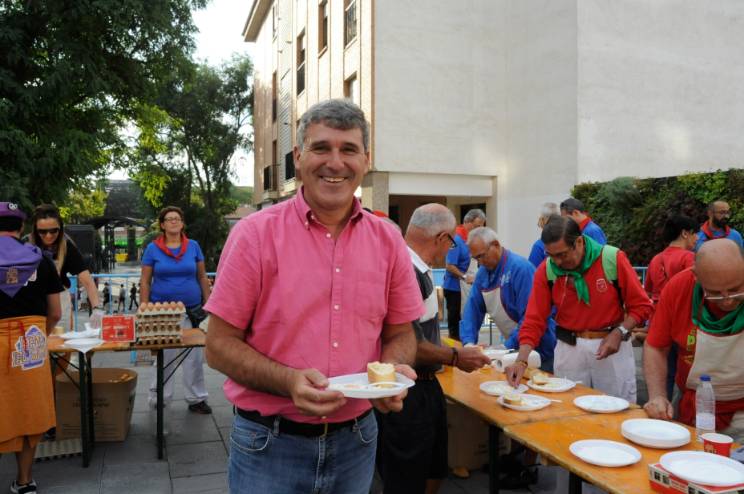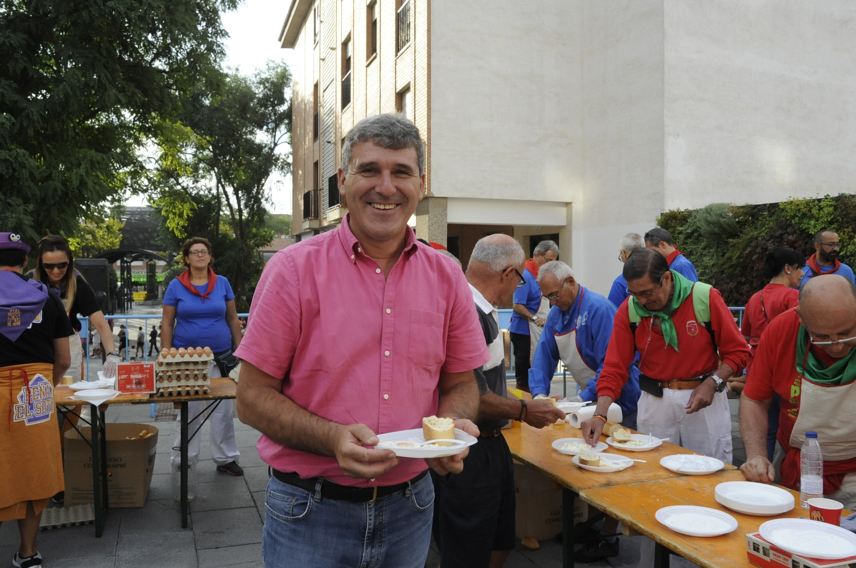 Las peñas de Móstoles se encargan de la preparación de los platos que constan de huevos fritos, bacon y una bebida para los adultos y refrescos para los más pequeños. Esta actividad cuenta con la colaboración de la empresa de huevos DAGU y de los comerciantes del Mercado de Artesanía.