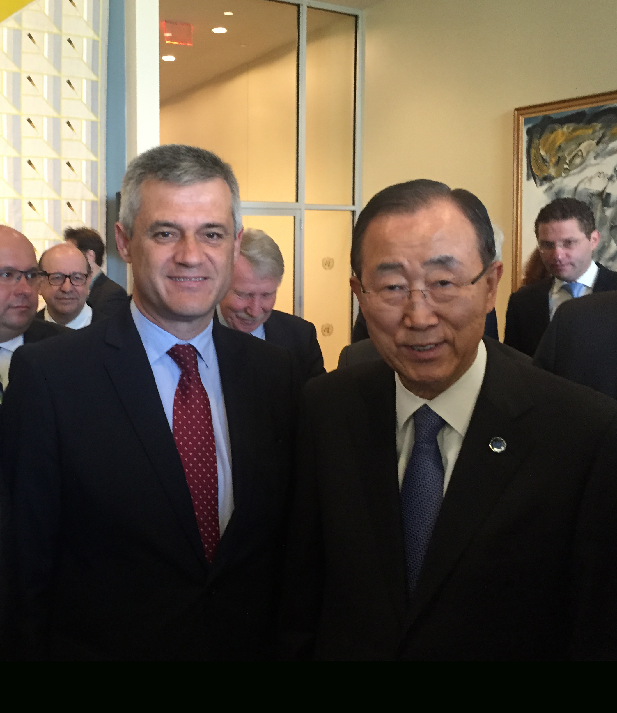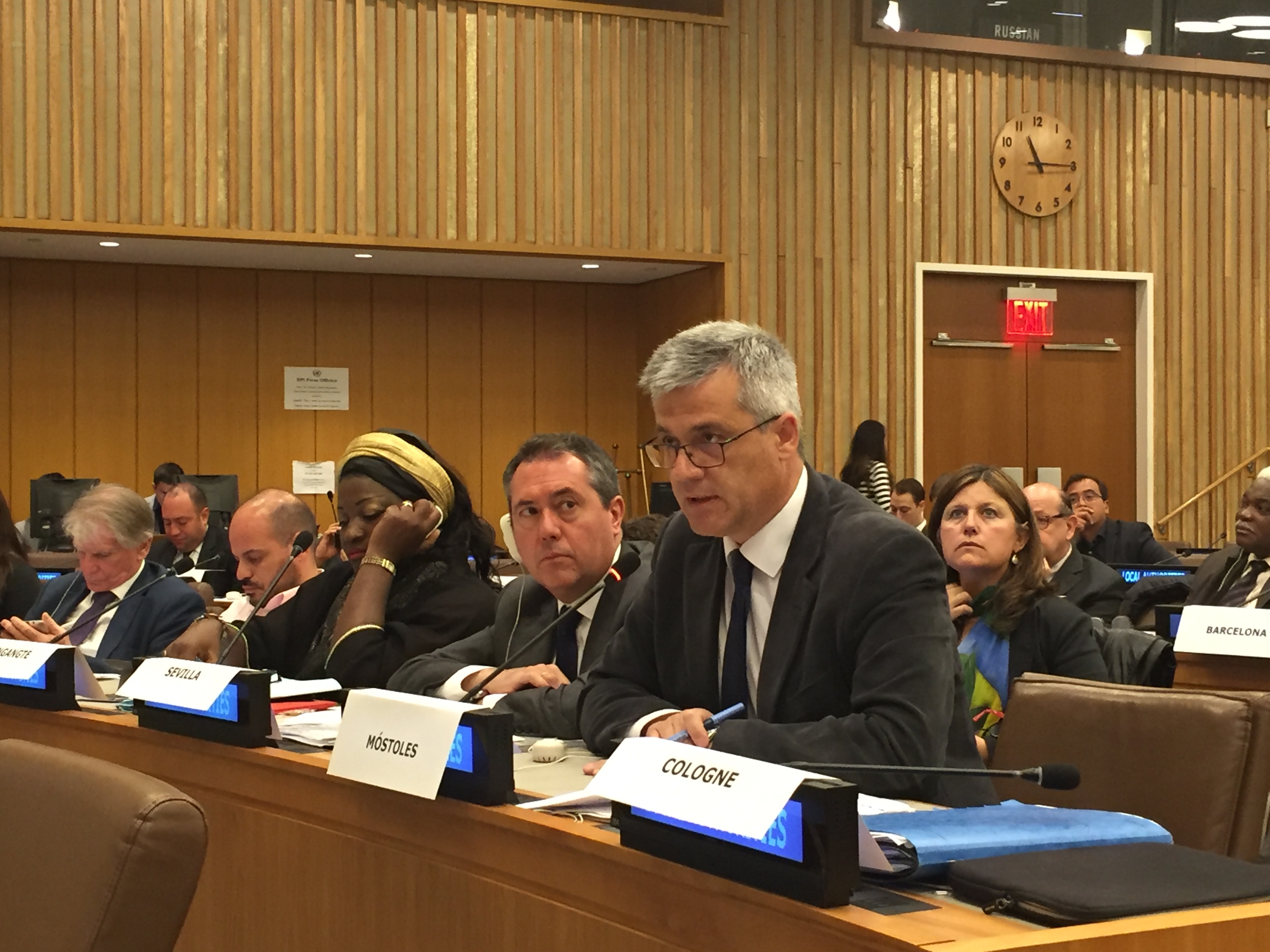 Imagen en alta resolución. Este enlace se abrirá mediante lightbox, puede haber un cambio de contextoDurante su participación en la segunda Asamblea Mundial de Gobiernos Locales y Regionales hacia Hábitat III, David Lucas, en representación de la Federación Española de Municipios y Provincias (FEMP), participó en el encuentro con el Secretario general de la Organización de Naciones Unidas, Ban Ki Moon.