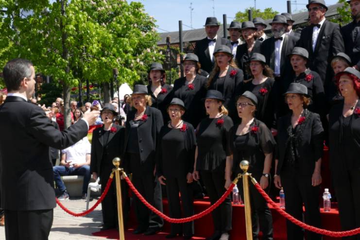 A continuación, se ha procedido al izado de las banderas por parte del alcalde y el concejal de Presidencia de Móstoles, acompañado por la interpretación de la Coral Villa de Móstoles del himno nacional.