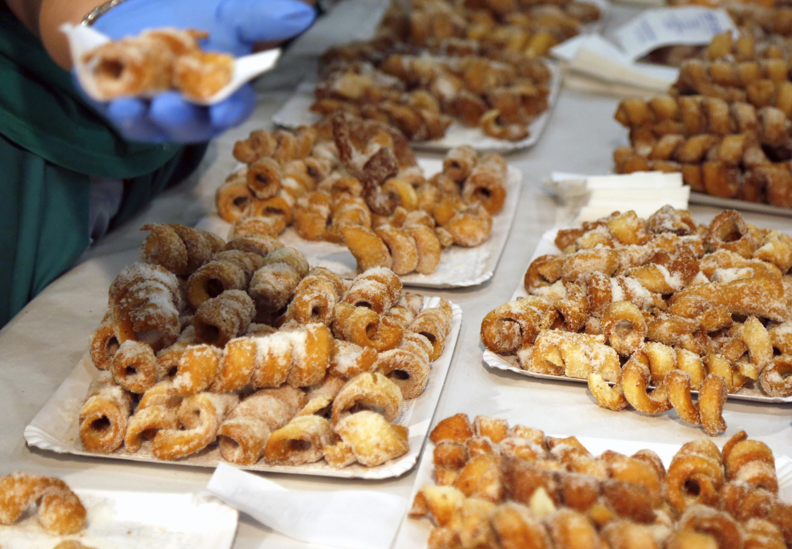 degustacion retorcidos 1Imagen en alta resolución. Este enlace se abrirá mediante lightbox, puede haber un cambio de contextodegustacion retorcidos 1Al término de la Procesión con las imágenes de Nuestra Señora de los Santos y San Simón de Rojas, que recorrió varias calles del centro, la peña El Soniquete invitó un año más a los vecinos y vecinas a la tradicional degustación de sus `retorcidos´, dulce típico, a la que asistió el Alcalde David Lucas, acompañado por varios miembros del Gobierno Municipal, junto a los socios de esta veterana peña mostoleña, que ya cuenta con cerca de 40 años de existencia.