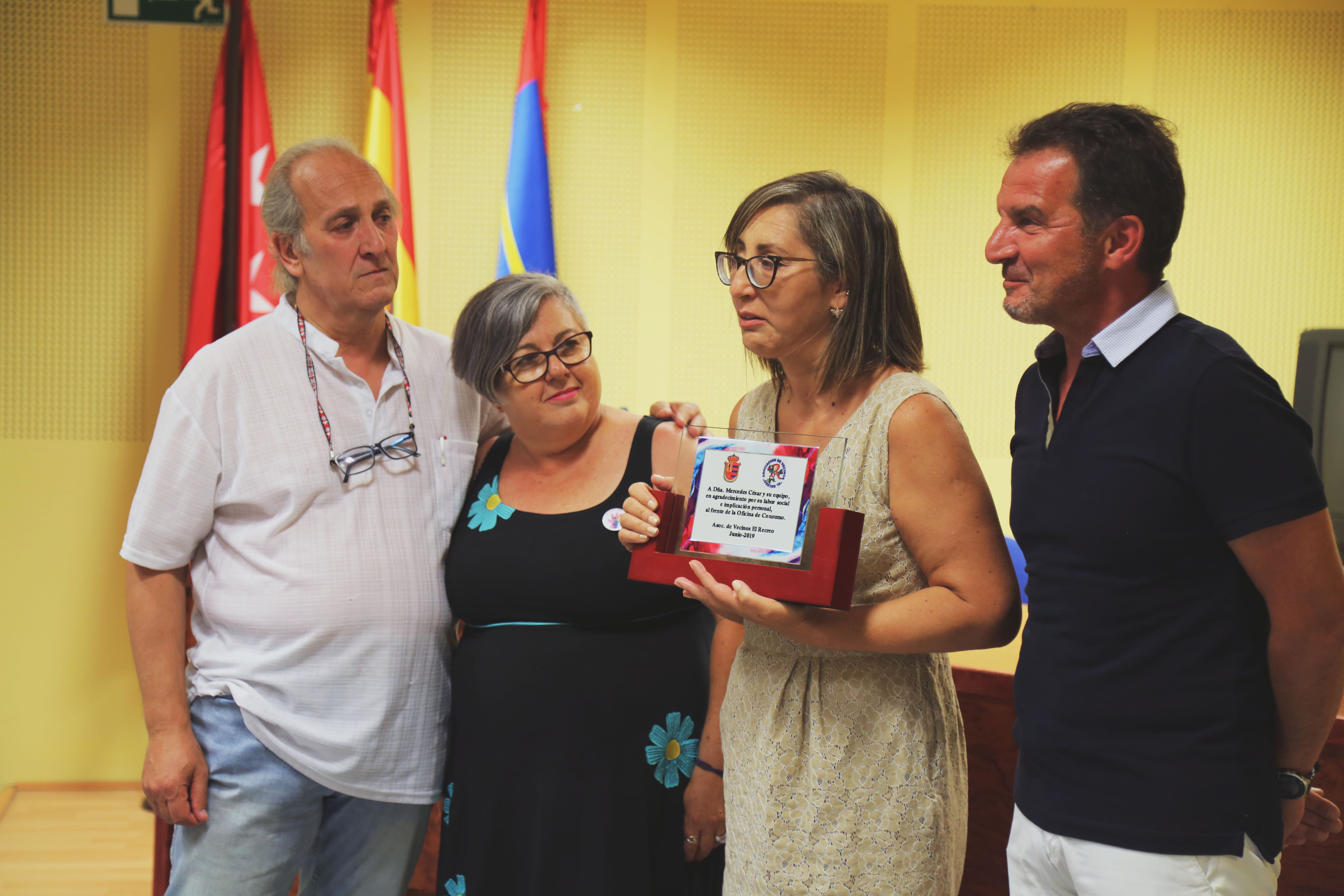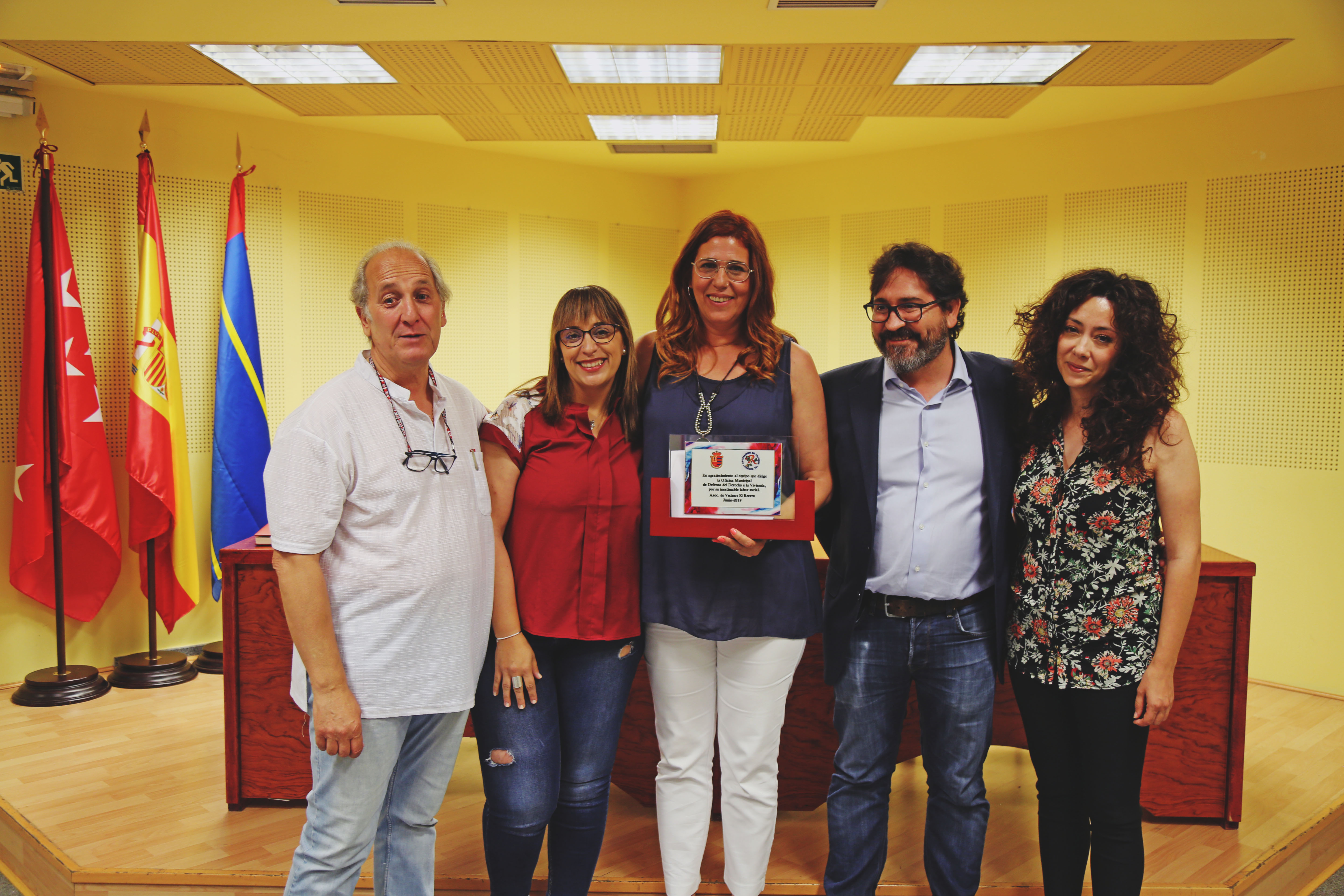 Imagen en alta resolución. Este enlace se abrirá mediante lightbox, puede haber un cambio de contextoLas y los trabajadores de la Oficina de Defensa de la Vivienda, dependiente de la Concejalía de Desarrollo Urbano, y del Departamento de Consumo, de la Concejalía de Igualdad y Cooperación, recibieron este viernes el reconocimiento a su labor por parte de la Asociación de Vecinos El Recreo.
