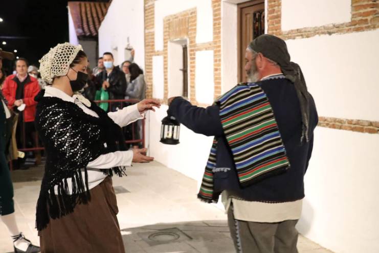 La comitiva que iluminó las calles del municipio, desde la Plaza de los Pájaros hasta la Plaza del Pradillo, se dirigió posteriormente al monumento de Andrés Torrejón, sitio en el que la Alcaldesa depositó un farolillo e hizo entrega del bastón de mando a las peñas.