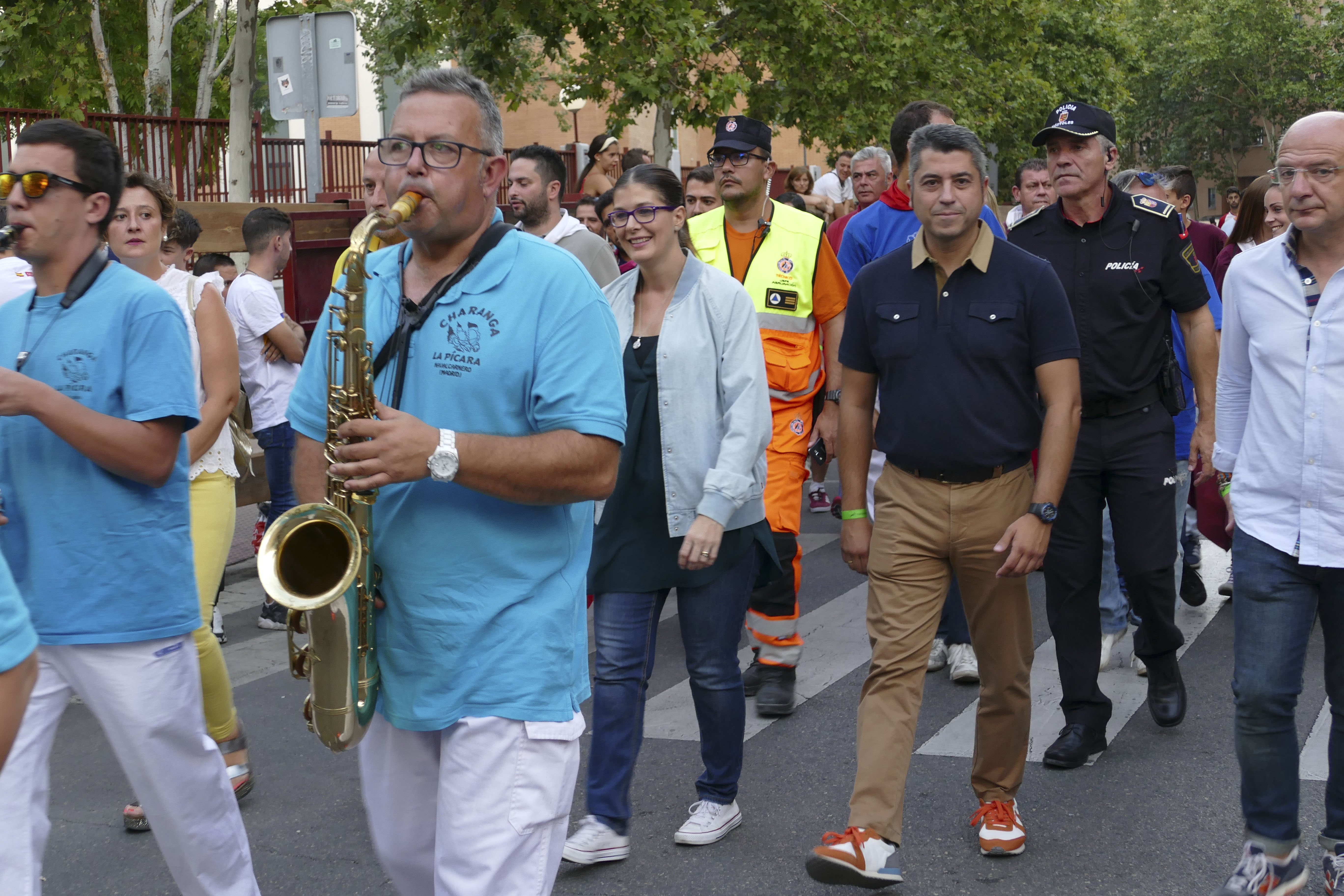 La alcaldesa, Noelia Posse, y el primer teniente de alcaldesa, Roberto Sánchez, asistieron a la suelta de reses del sábado por la tarde, junto a cientos de mostoleñas y mostoleños aficionados y otros miembros del equipo de Gobierno como los concejales Javier Gómez y Arantxa Fernández.