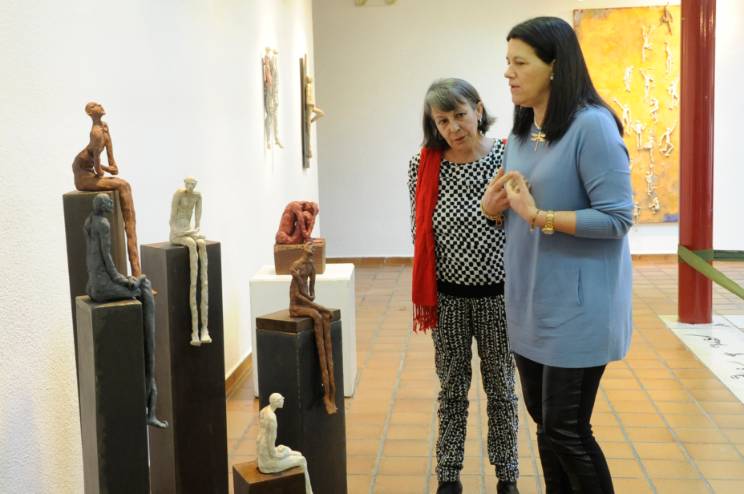 Mirina Cortés, concejal de Educación, Cultura y Promoción Turística, participó esta mañana en la visita guiada, ofrecida por la artista Celedonia García, a través de la exposición de cerámica "Como si no doliera".