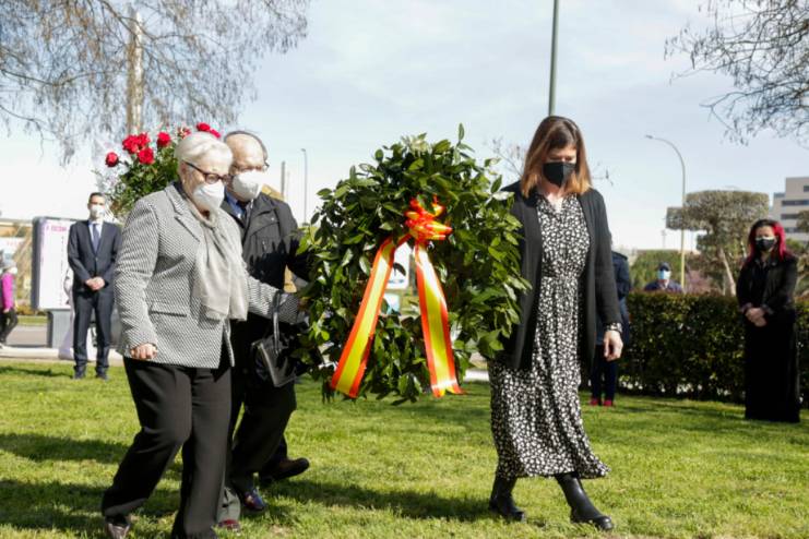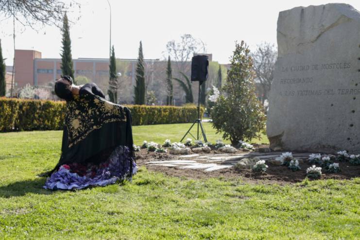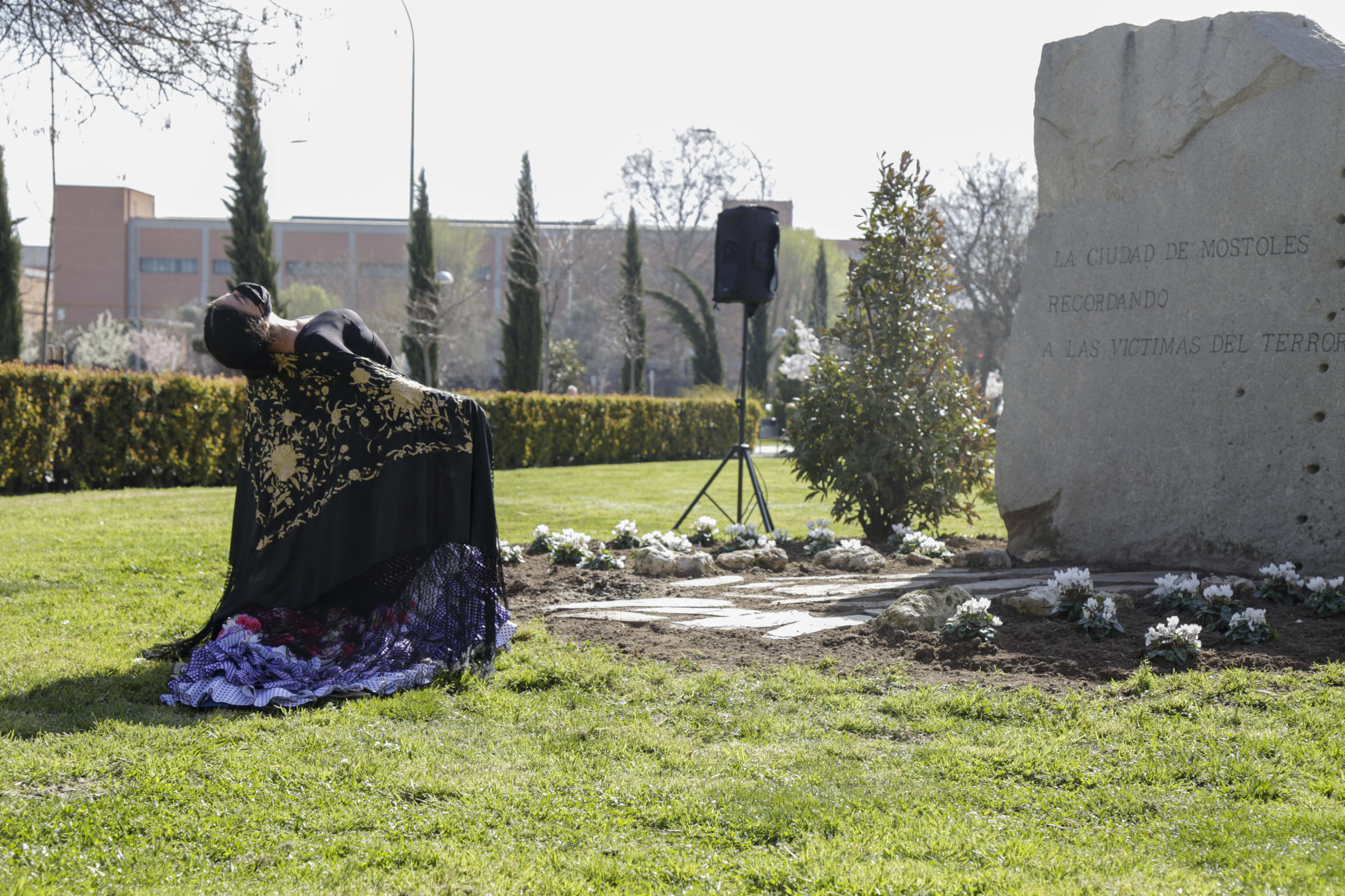 • En el monolito en honor a las víctimas del terrorismo, la Alcaldesa Noelia Posse, junto a familiares de una de las víctimas ha depositado una corona de laurel en recuerdo de todos los asesinados en el atentado del 11-M, mientras la danza y la poesía envolvían el solemne silencio que inundaba el acto.