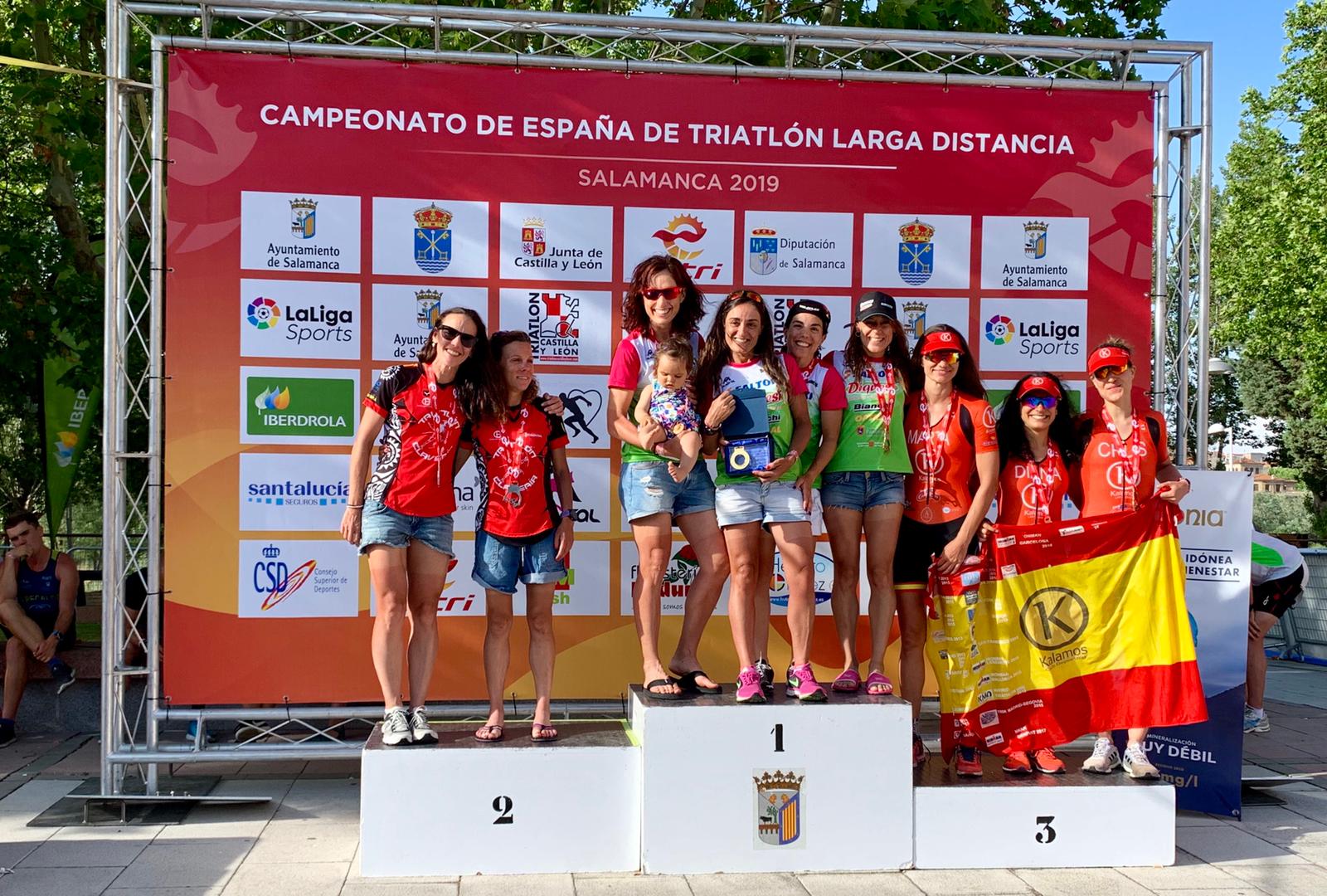 El pasado domingo se celebró en Salamanca el Campeonato de España de Triatlón de Larga Distancia, en el que el equipo Élite femenino logró el subcampeonato gracias al gran trabajo realizado por Cristina Roselló (que también subió al podio gracias a su tercer puesto logrado en esta prueba), Ana Caleya e Isabel del Barrio que se clasificaron cuarta y quinta respectivamente. Esto hizo que quedaran segundas en la clasificación por equipos femeninos. La prueba consistía en nadar 3.000 metros (dos vueltas de 1.500 metros), 120 km de bici en un circuito de 40 km, y por último 30,75km de carrera a pie en un circuito de 10,25km.