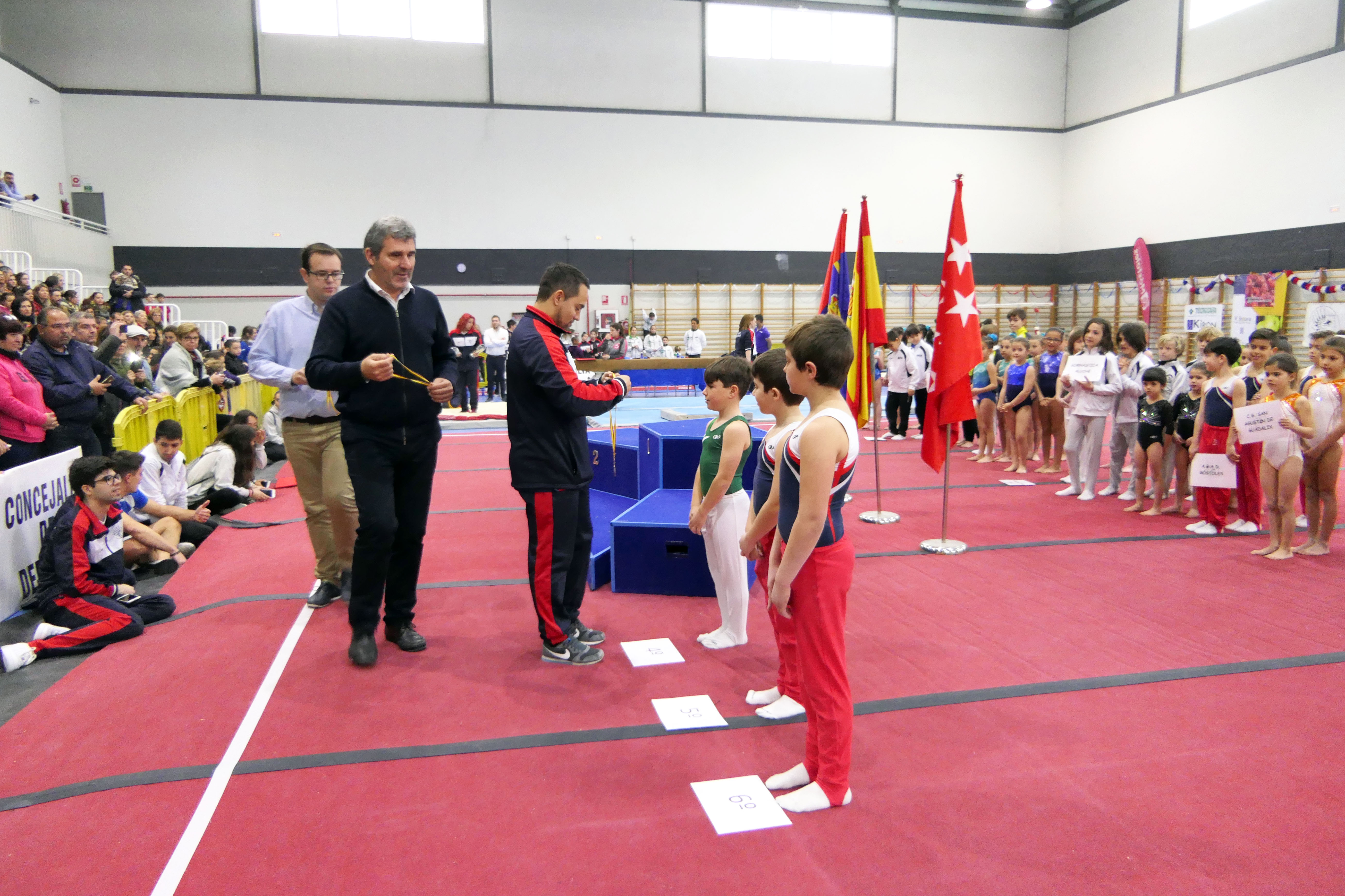 Imagen en alta resolución. Este enlace se abrirá mediante lightbox, puede haber un cambio de contextoEl concejal de Deportes, Obras, Infraestructuras y Mantenimiento de Vías Públicas, Agustín Martín, hizo entrega este sábado 24 de marzo de los premios y trofeos del Torneo de Gimnasia Artística "Ciudad de Móstoles" 2018, celebrado en el Pabellón Rafa Martínez (Calle París s/n) del municipio.