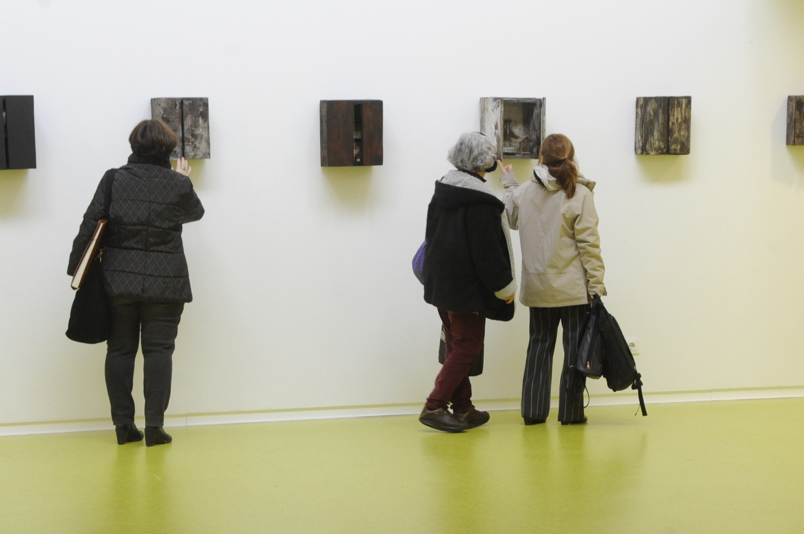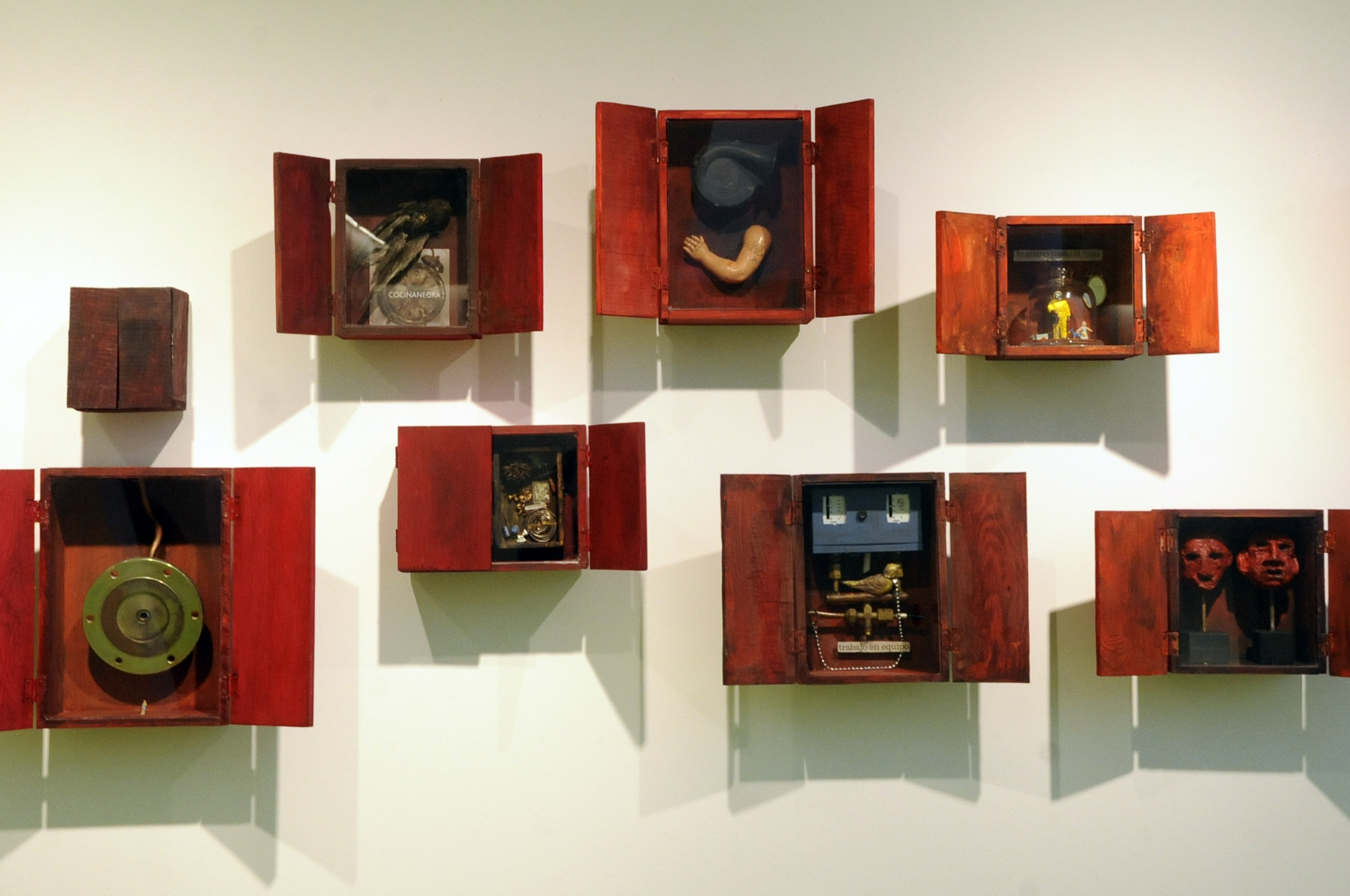 La está formada por 30 cajas, 20 contenedores y un mosaico de pared con varias obras.