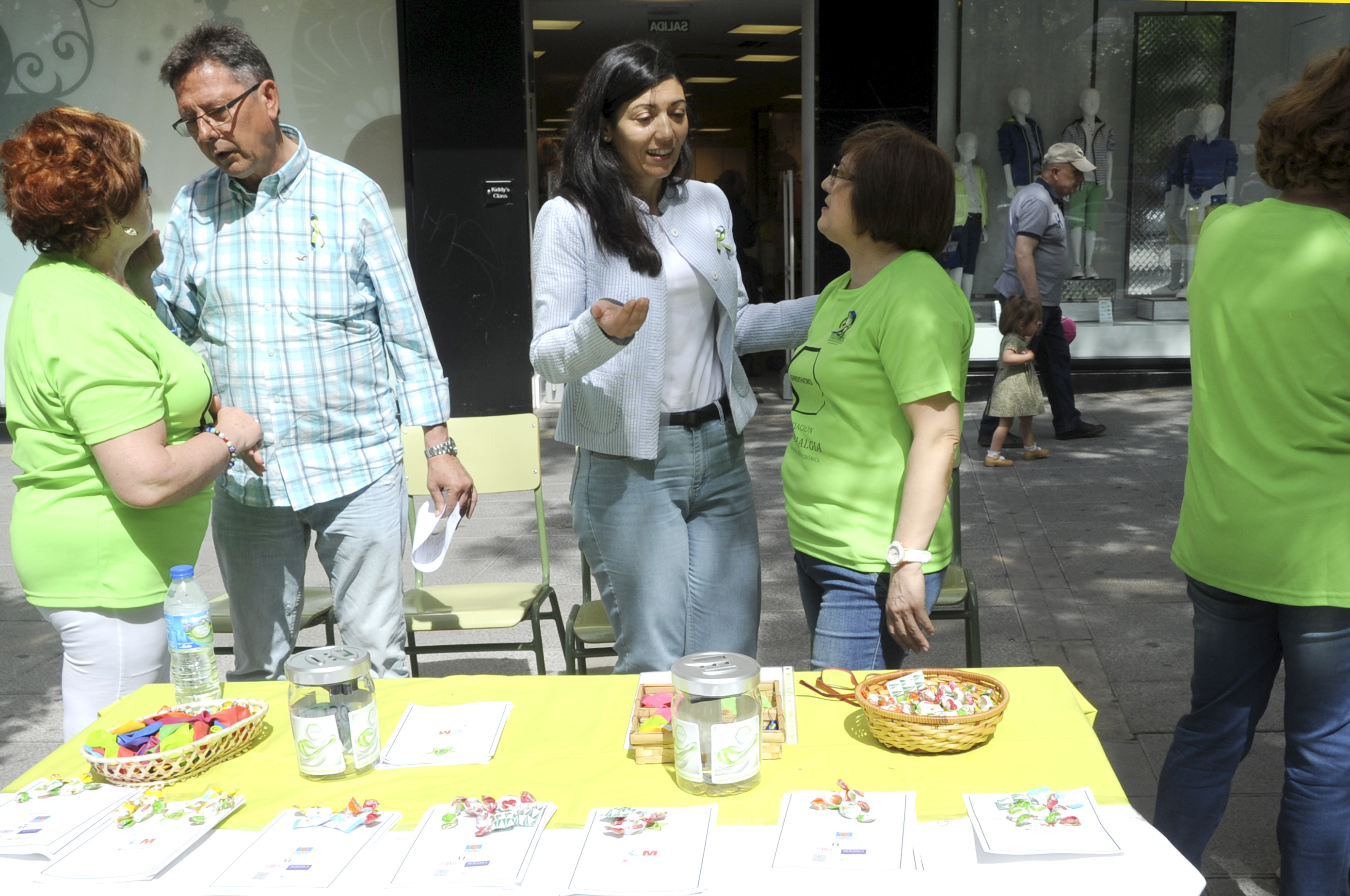 La Concejal de Familia y Bienestar Social, Gema Zamorano y el Concejal Adjunto de Festejos, Eduardo de Santiago, han visitado la mesa informativa que ha instalado la Asociación de Fibromialgia y Sindrome de Fatiga Crónica de Móstoles (AFINSYFACRO) en la Plaza de Pradillo.