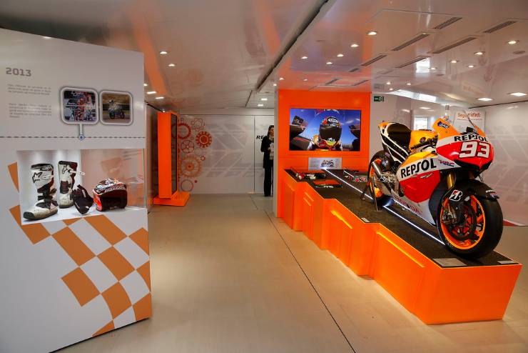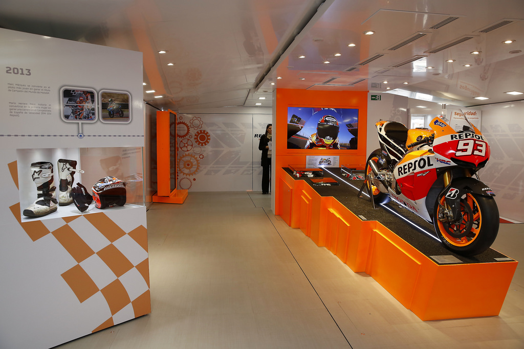 Como extras, entre otros, se encuentra la moto con la que Marc Márquez ganó su primer Mundial en MotoGP, un mono de competición de Dani Pedrosa y otros muchos elementos de pilotos que han formado parte de la historia del Equipo Repsol. La exposición es accesible a personas con movilidad reducida, ya que cuenta con una entrada a través de rampa.