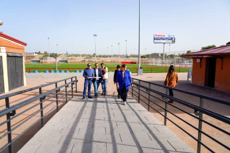 La Alcaldesa, Noelia Posse, acompañada del Concejal de Deportes, Carlos Rodríguez del Olmo, y la Portavoz de Podemos, Mónica Monterreal, ha visitado hoy los trabajos de reparación y remodelación del complejo deportivo que han contado con un presupuesto de 1,4 millones de euros y han afectado a unos 27.124,5 m² de terreno.