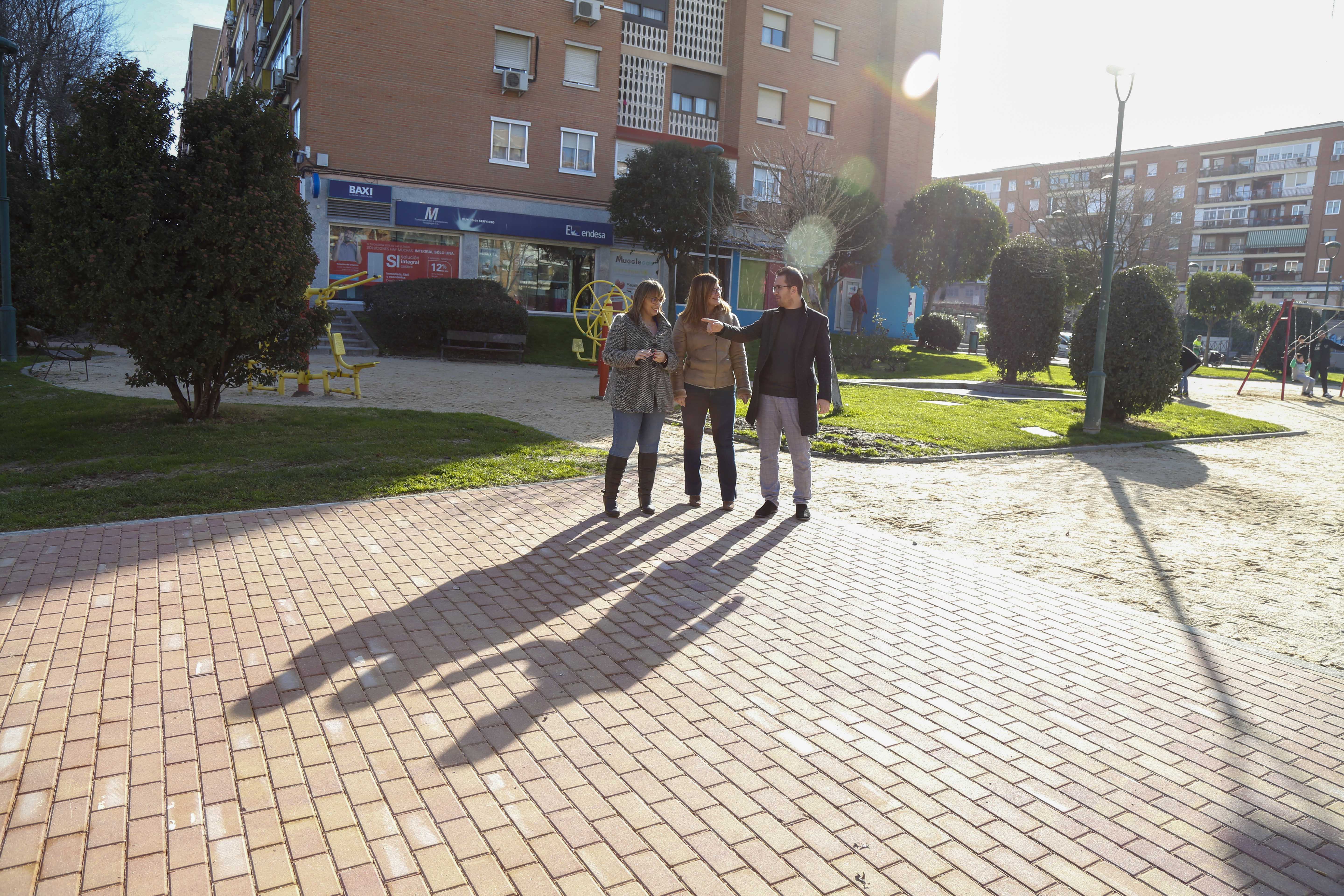 La alcaldesa de Móstoles, Noelia Posse, el concejal de Mejora y Mantenimiento de los Espacios Públicos, David Muñoz, y la concejala de Desarrollo Urbano y presidenta de la Junta de Distrito 4, Marisa Ruiz, visitaron esta mañana la finalización de dichas obras.