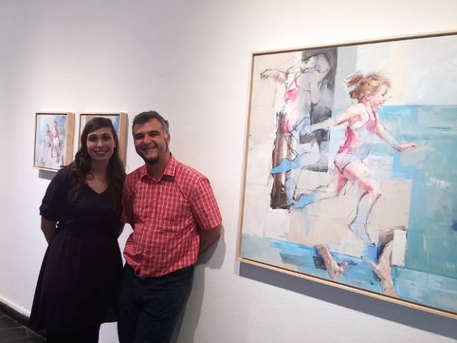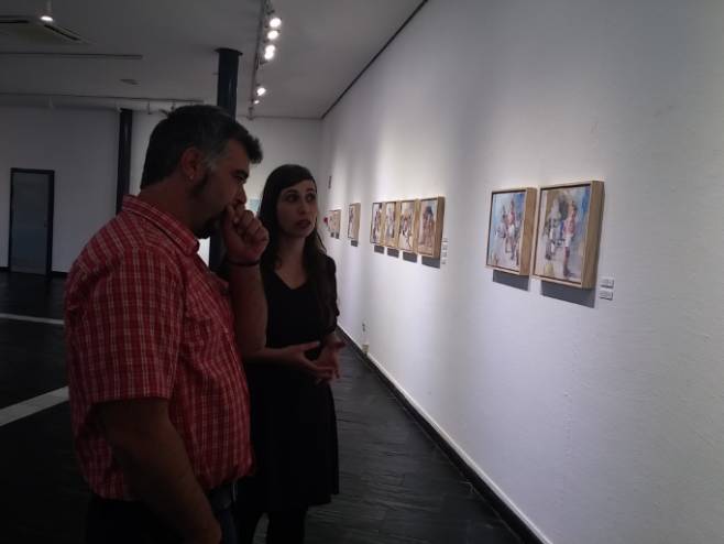 Acompañado por la autora de la muestra, Ortega ha conocido de primera mano una propuesta pictórica que rememora la infancia a través de técnicas singulares.